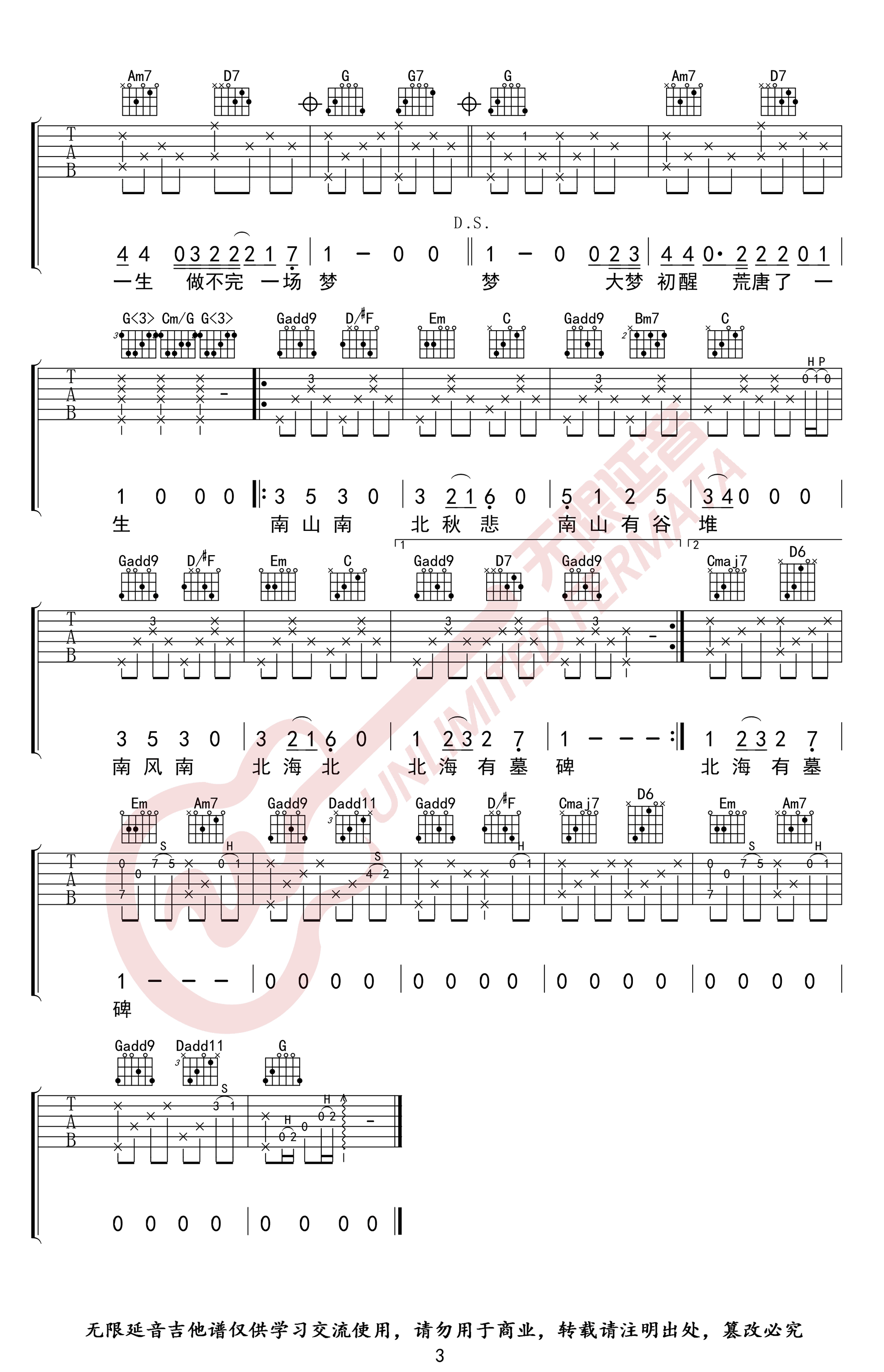- 南山南吉他谱_马頔_G调_弹唱六线谱