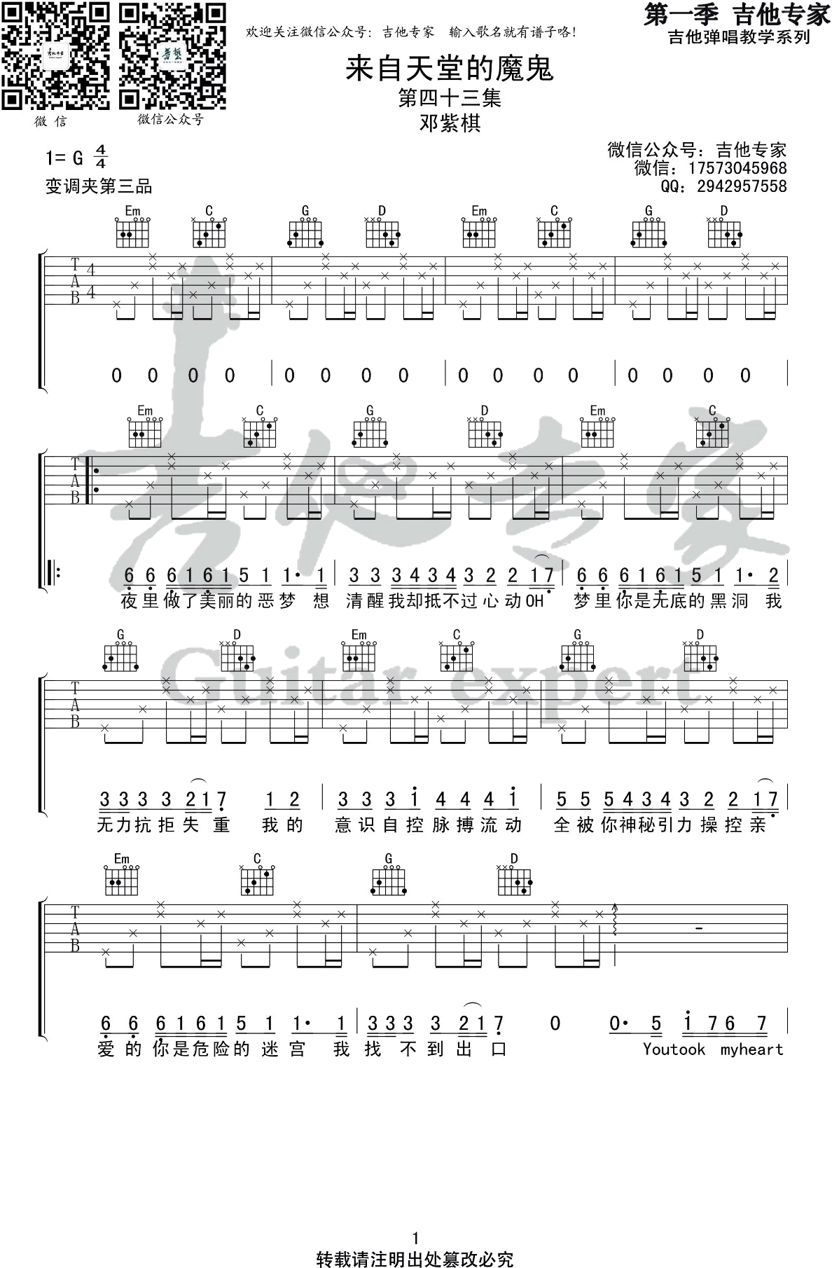 - 来自天堂的魔鬼吉他谱_G调_邓紫棋_高清图片谱