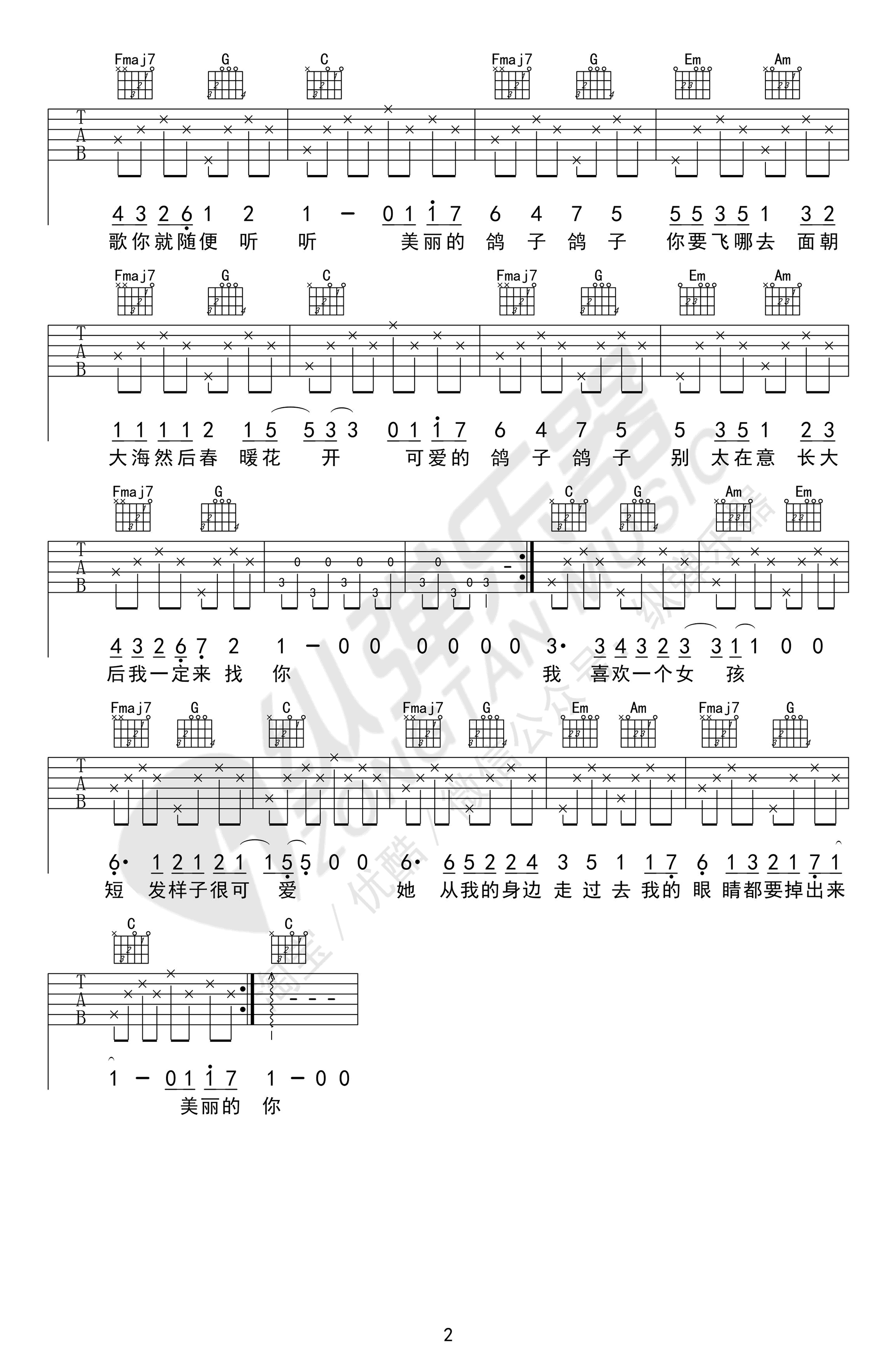 - 鸽子吉他谱_徐秉龙_C调原版_弹唱六线谱