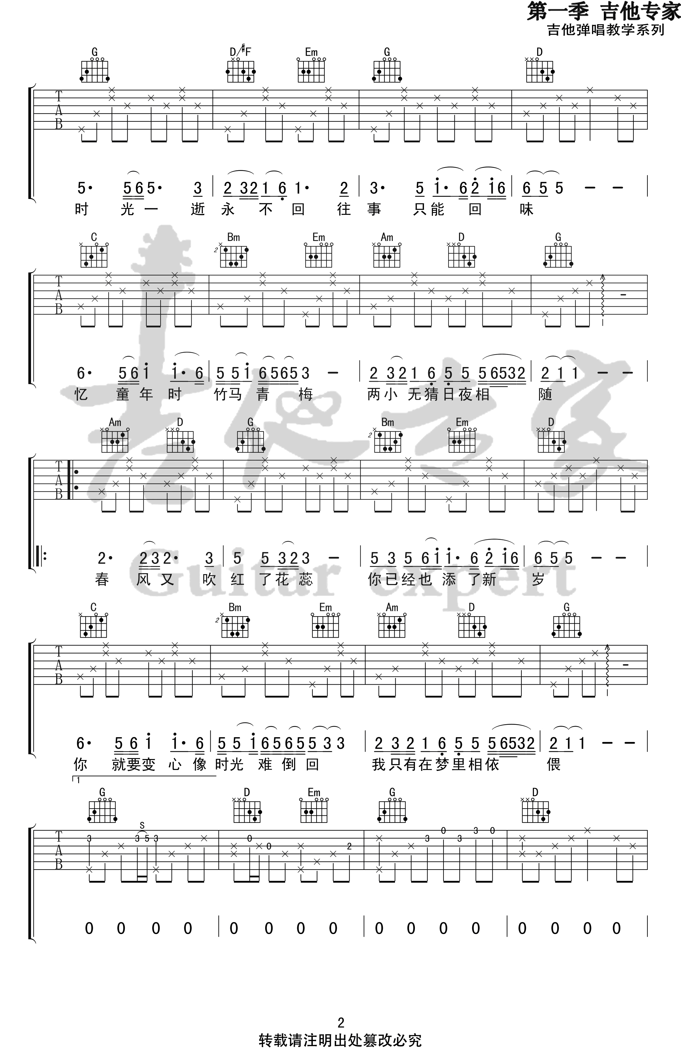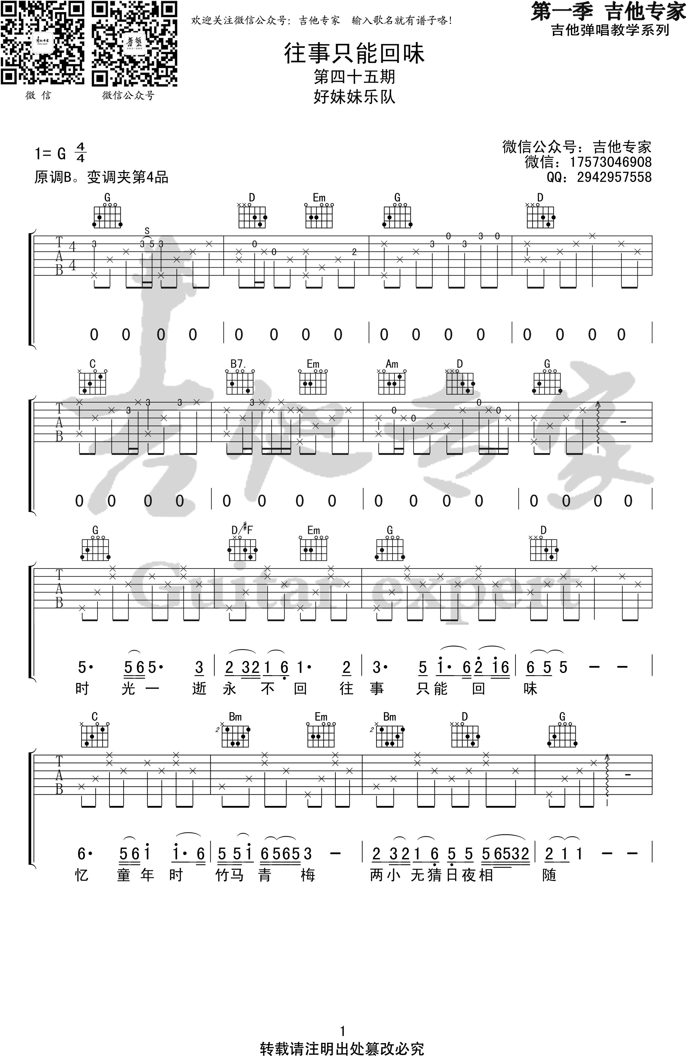 - 往事只能回味吉他谱_好妹妹乐队_G调_高清弹唱谱