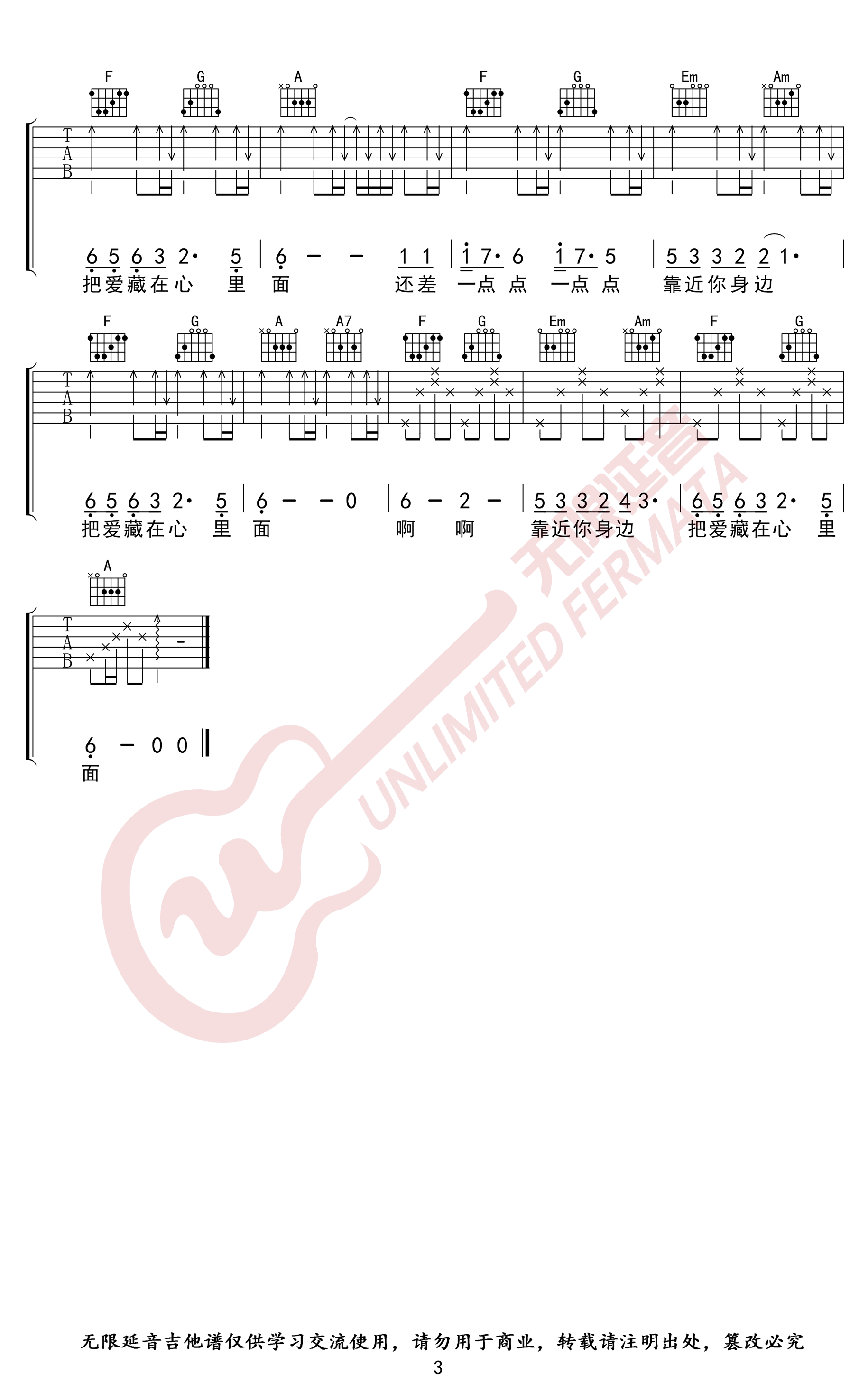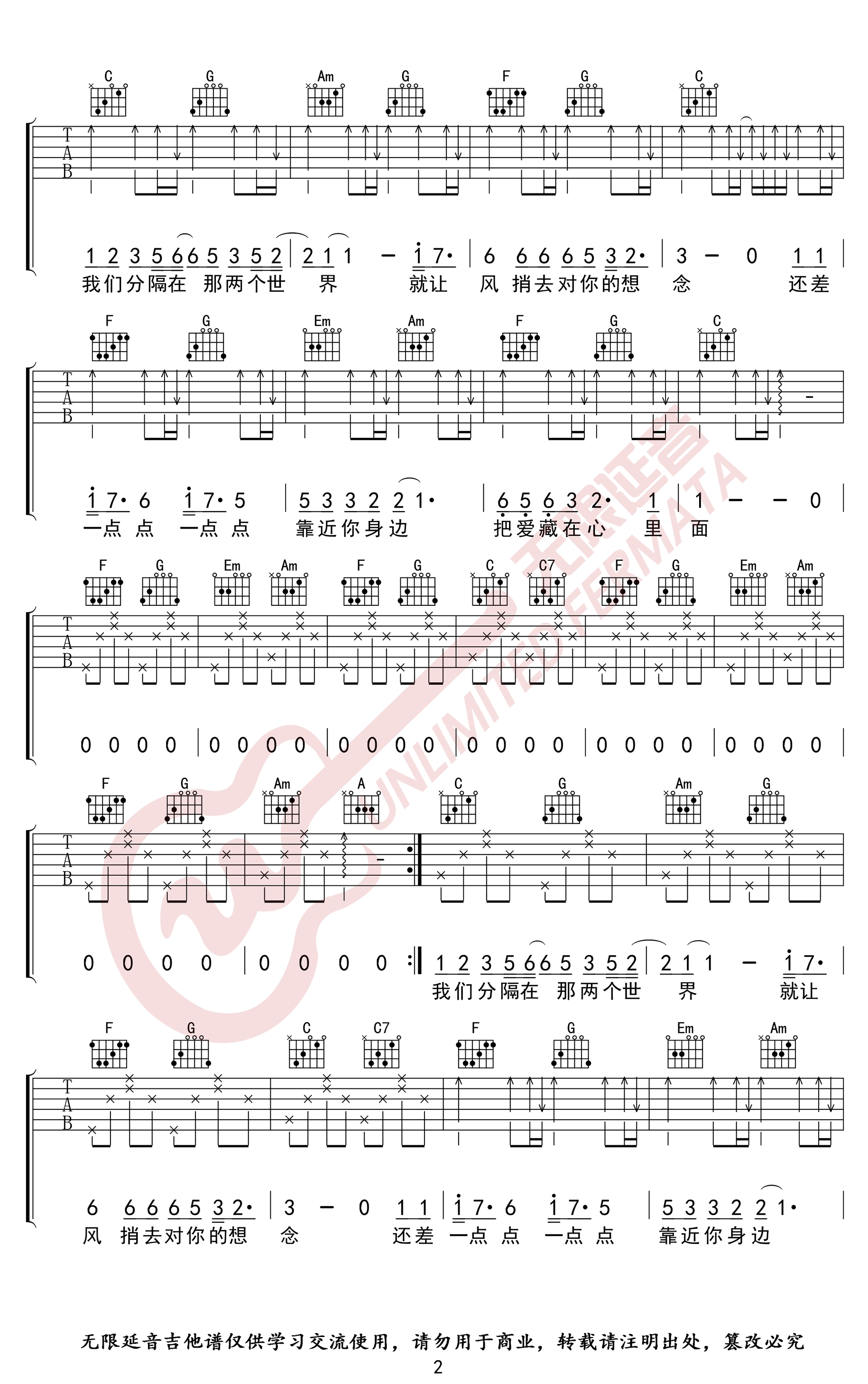 - 晚安吉他谱_颜人中_C调六线谱_高清图片谱