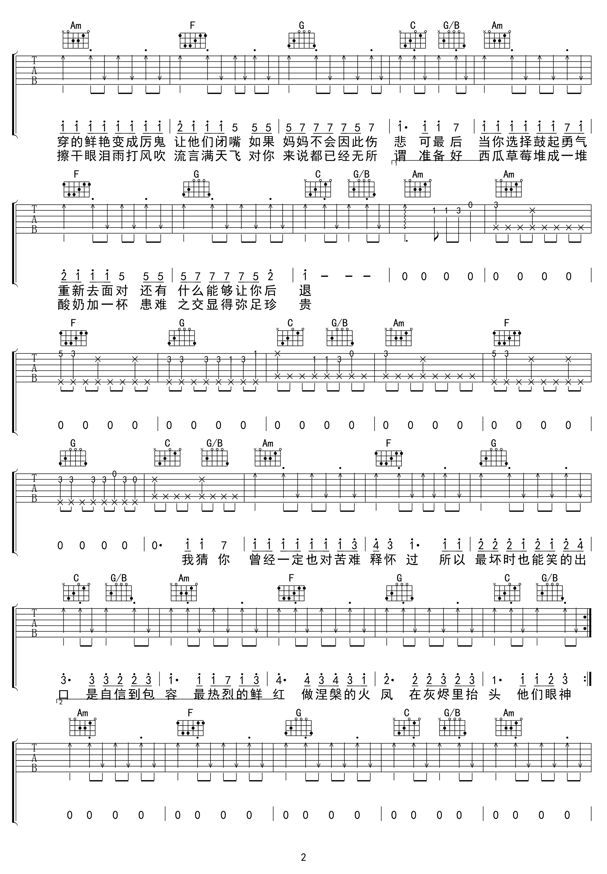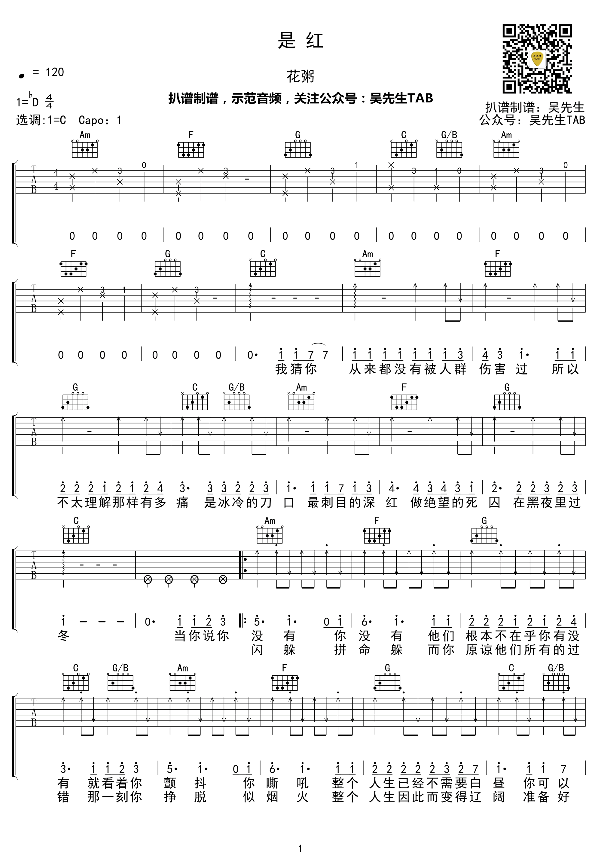 - 是红吉他谱_花粥_C调弹唱谱_高清图片谱