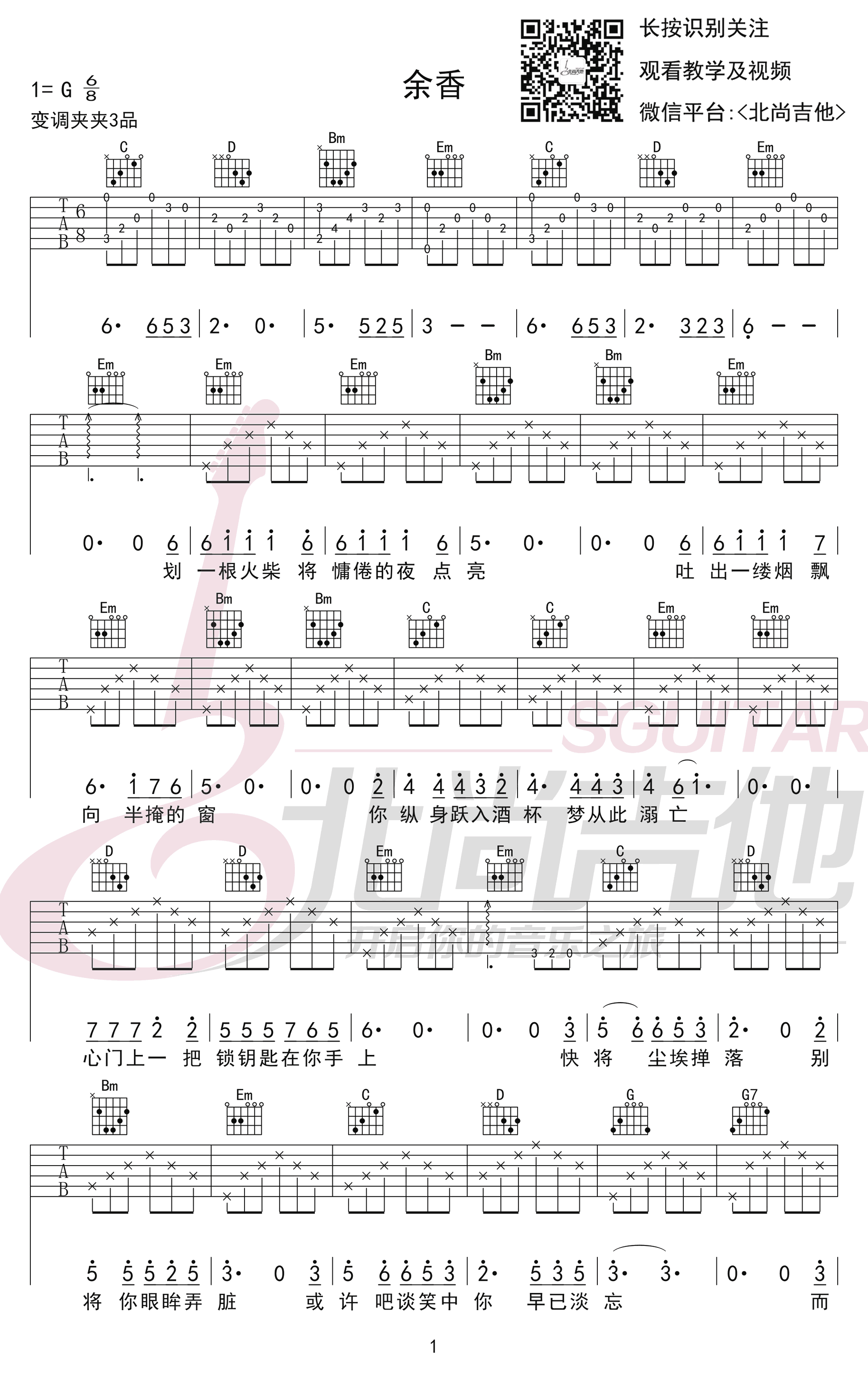 - 余香吉他谱_张小九_G调弹唱谱_高清图片谱