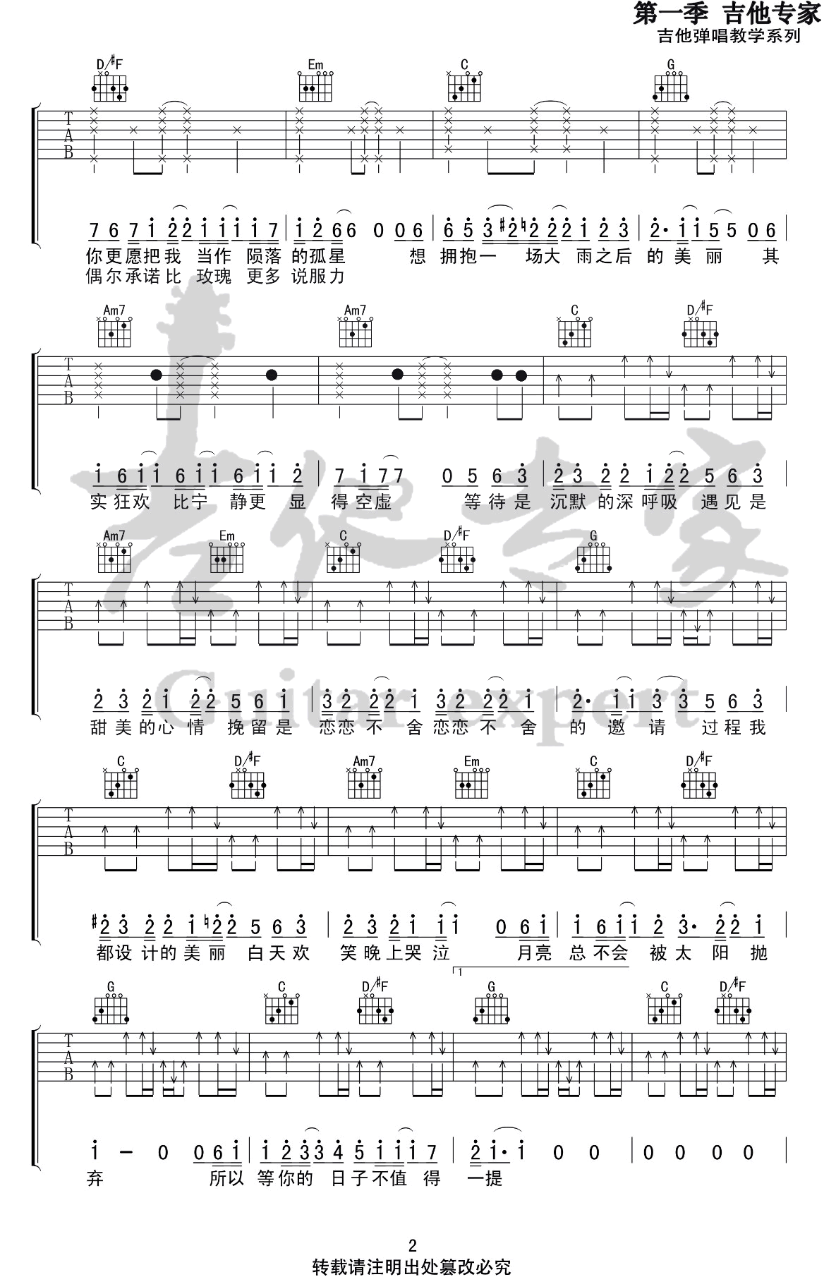 - 《耿》吉他谱_汪苏泷_C调简单版_吉他教学视频
