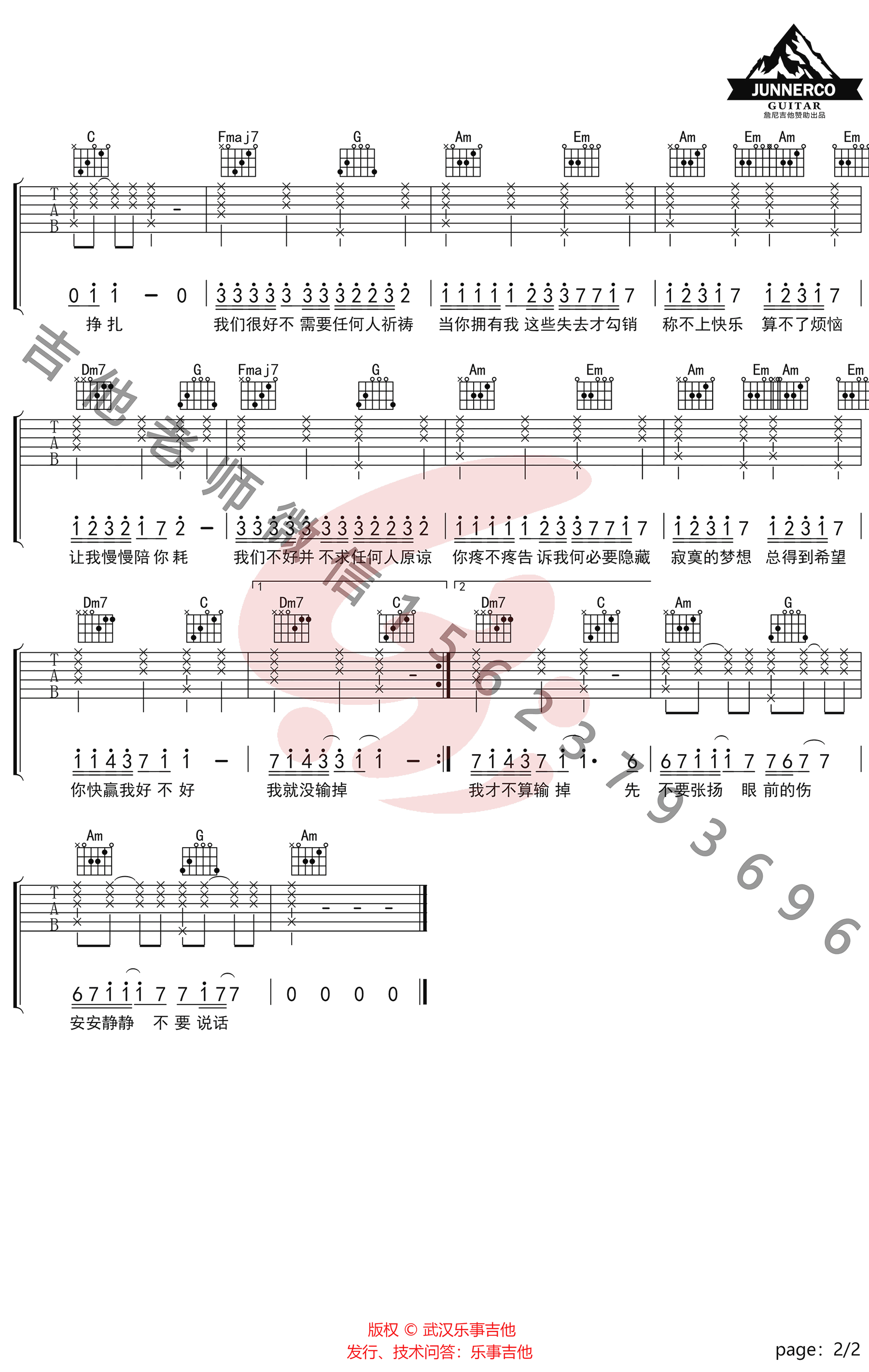 - 小酒窝吉他谱C调_林俊杰&蔡卓妍_高清六线谱