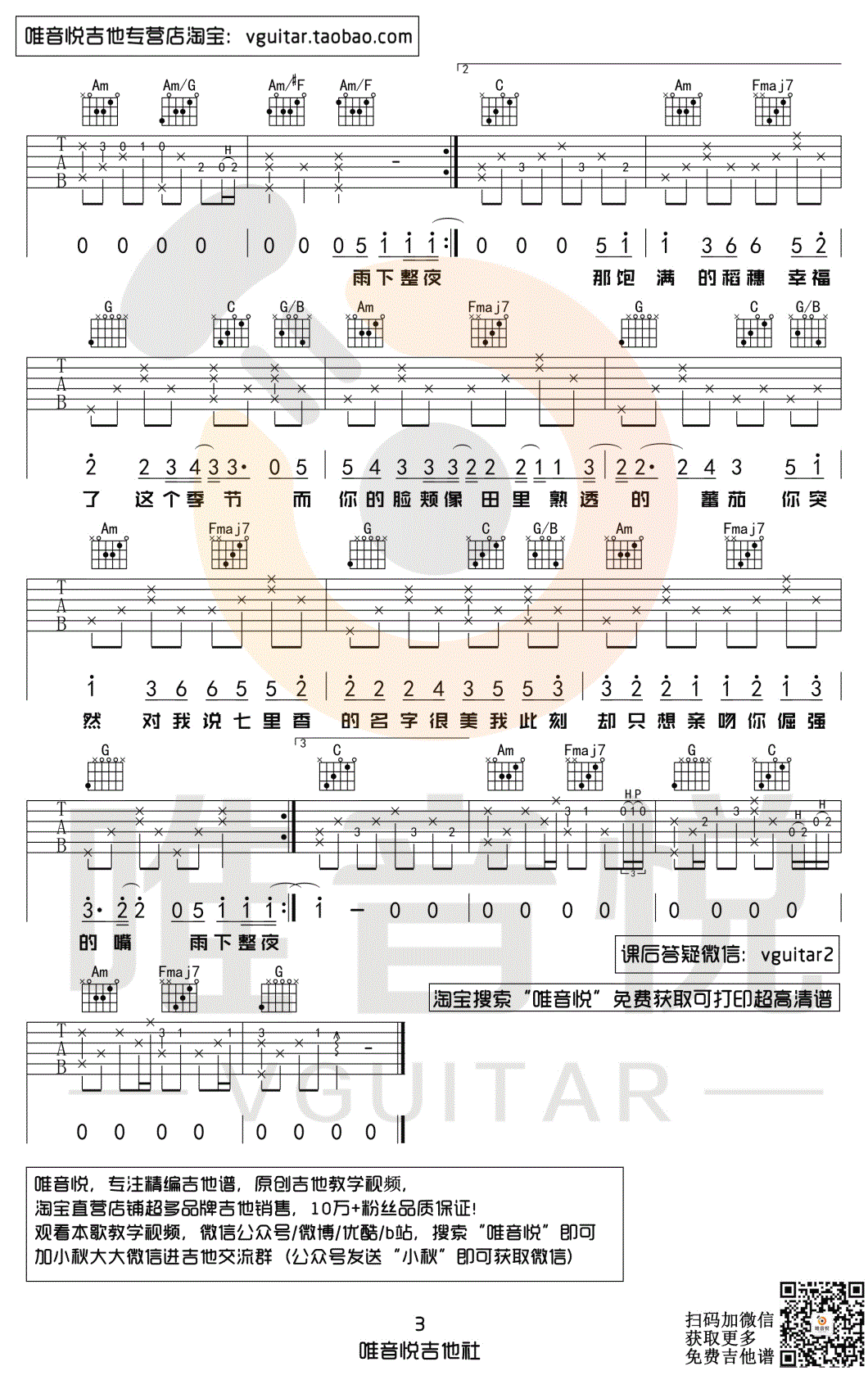 - 七里香吉他谱_周杰伦_C调指法_弹唱六线谱