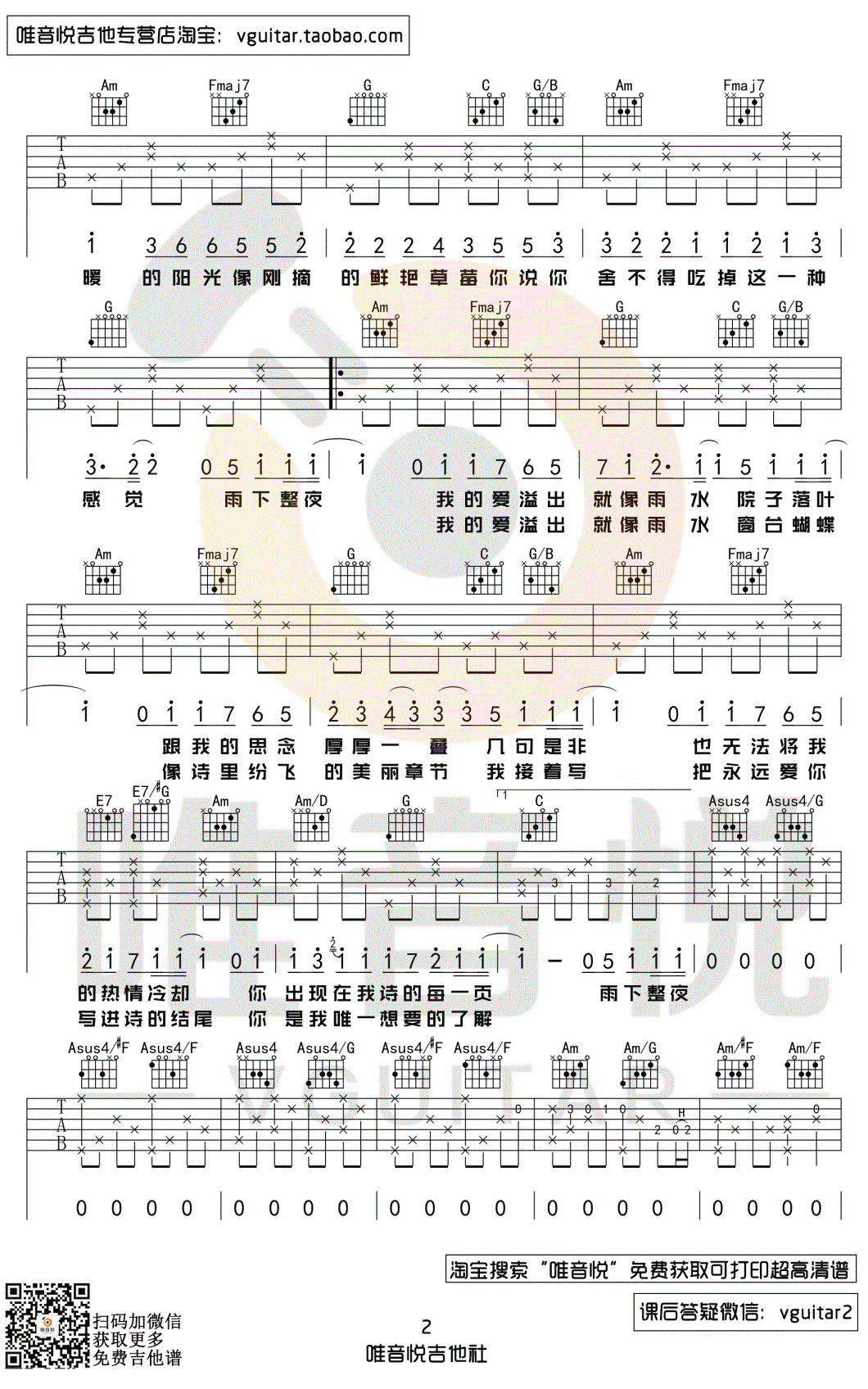 - 情深深雨蒙蒙吉他谱_杨胖雨_C调简单版_弹唱教学视频