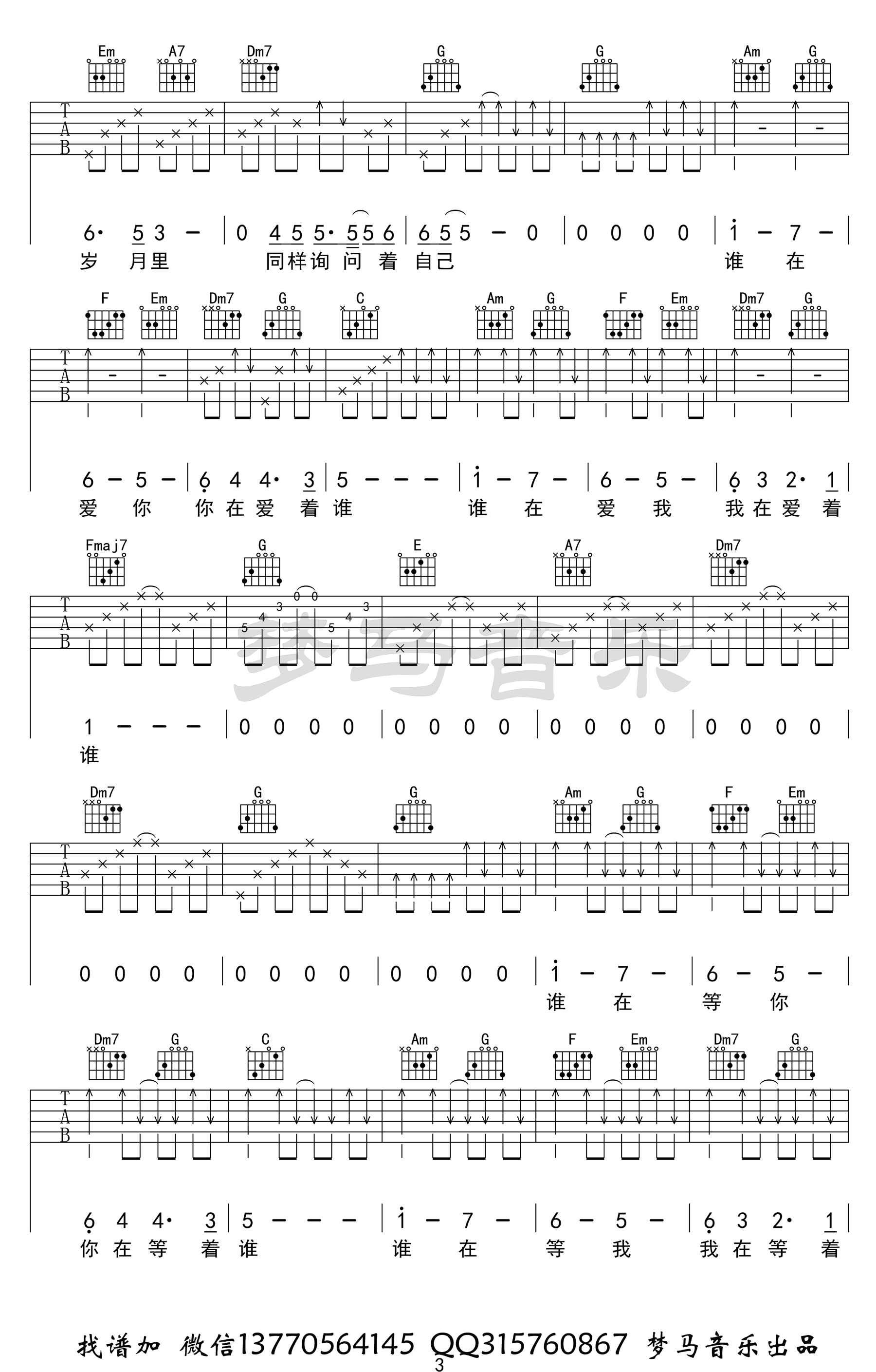 - 耿吉他谱_汪苏泷_C调简单版_带前奏间奏_图片谱