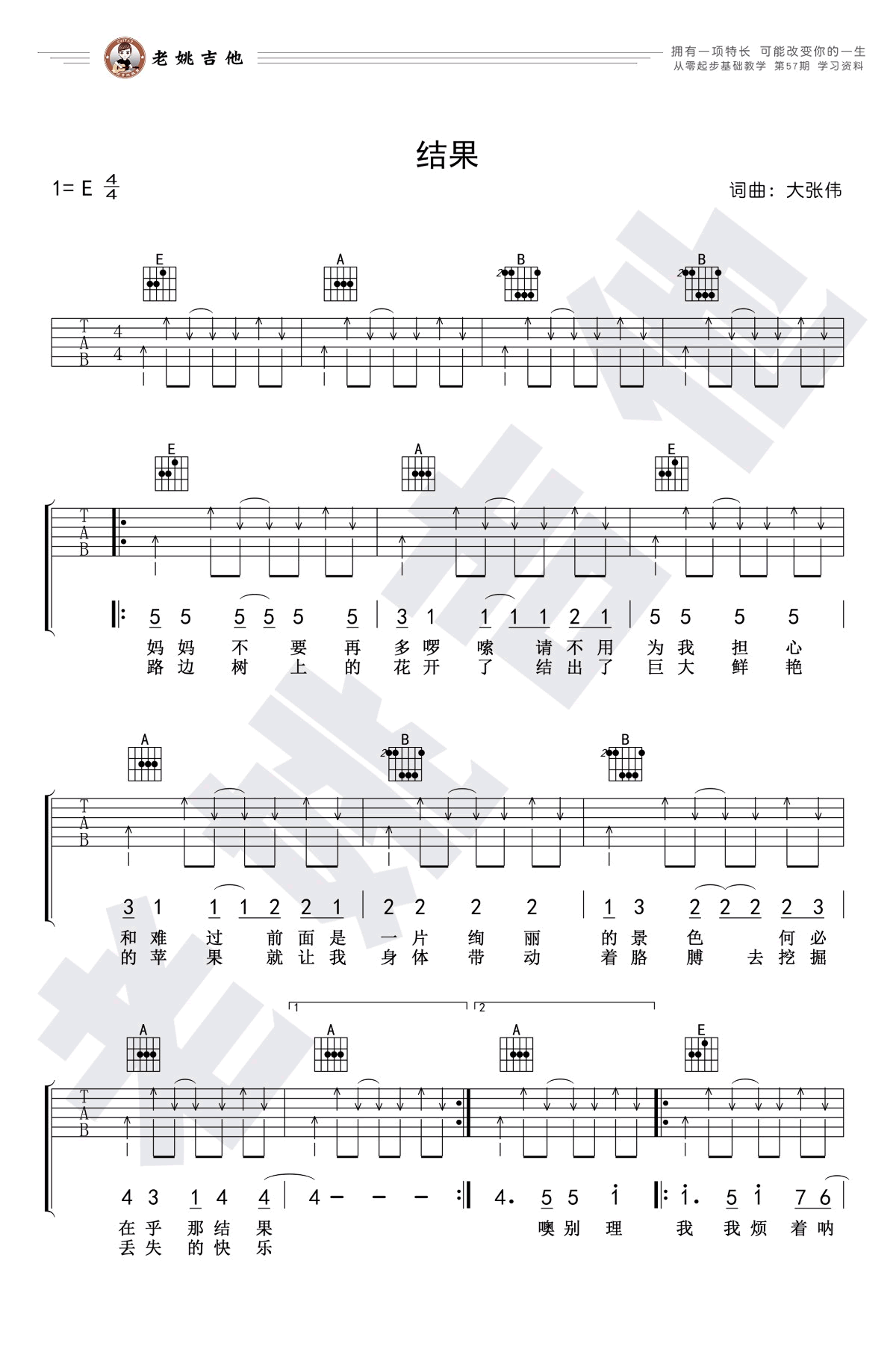 - 花儿乐队《结果》吉他谱_E调指法_Re指型_吉他教学视频