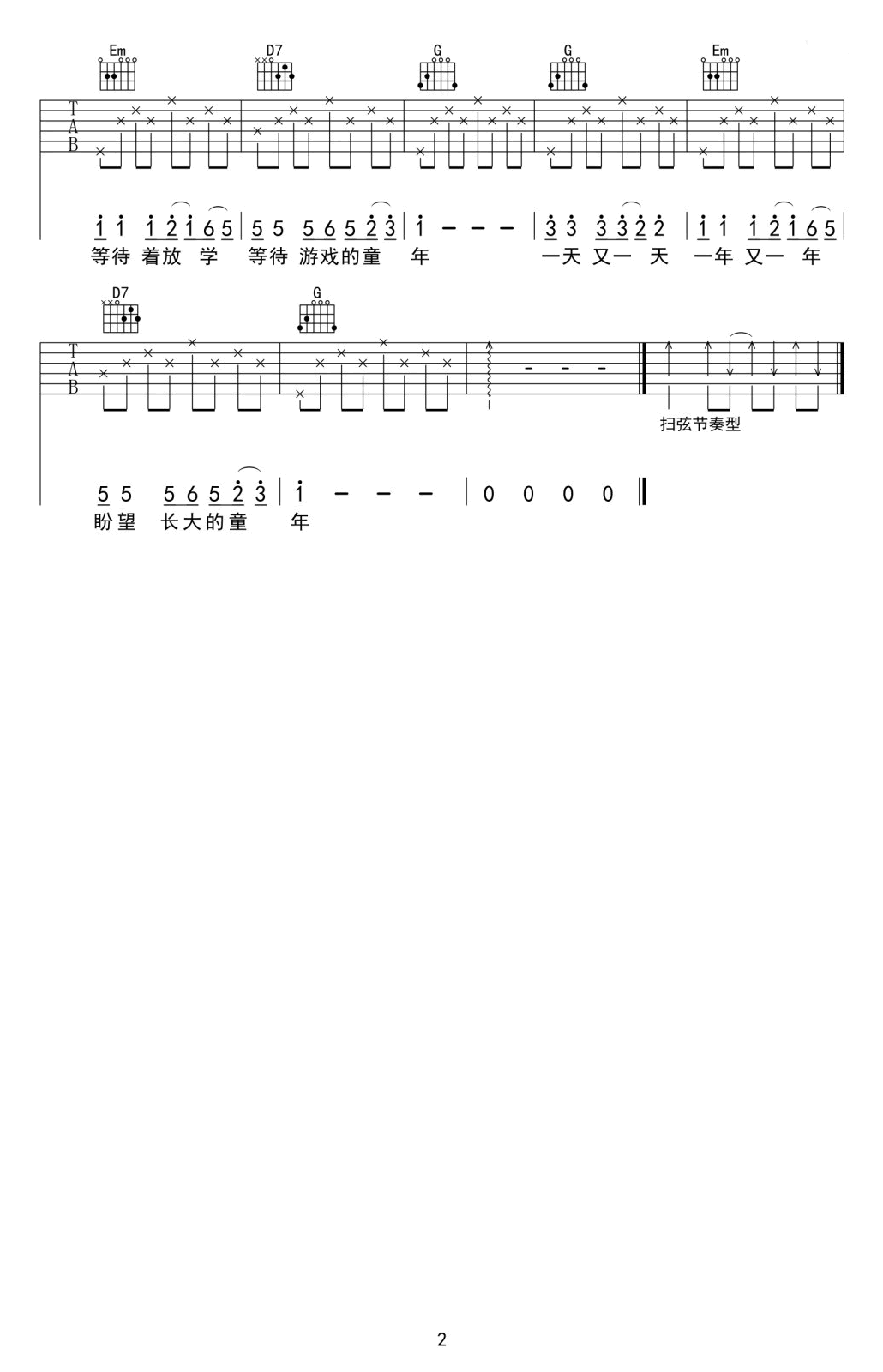 - 童年吉他谱_罗大佑_G调简单版_儿歌弹唱谱