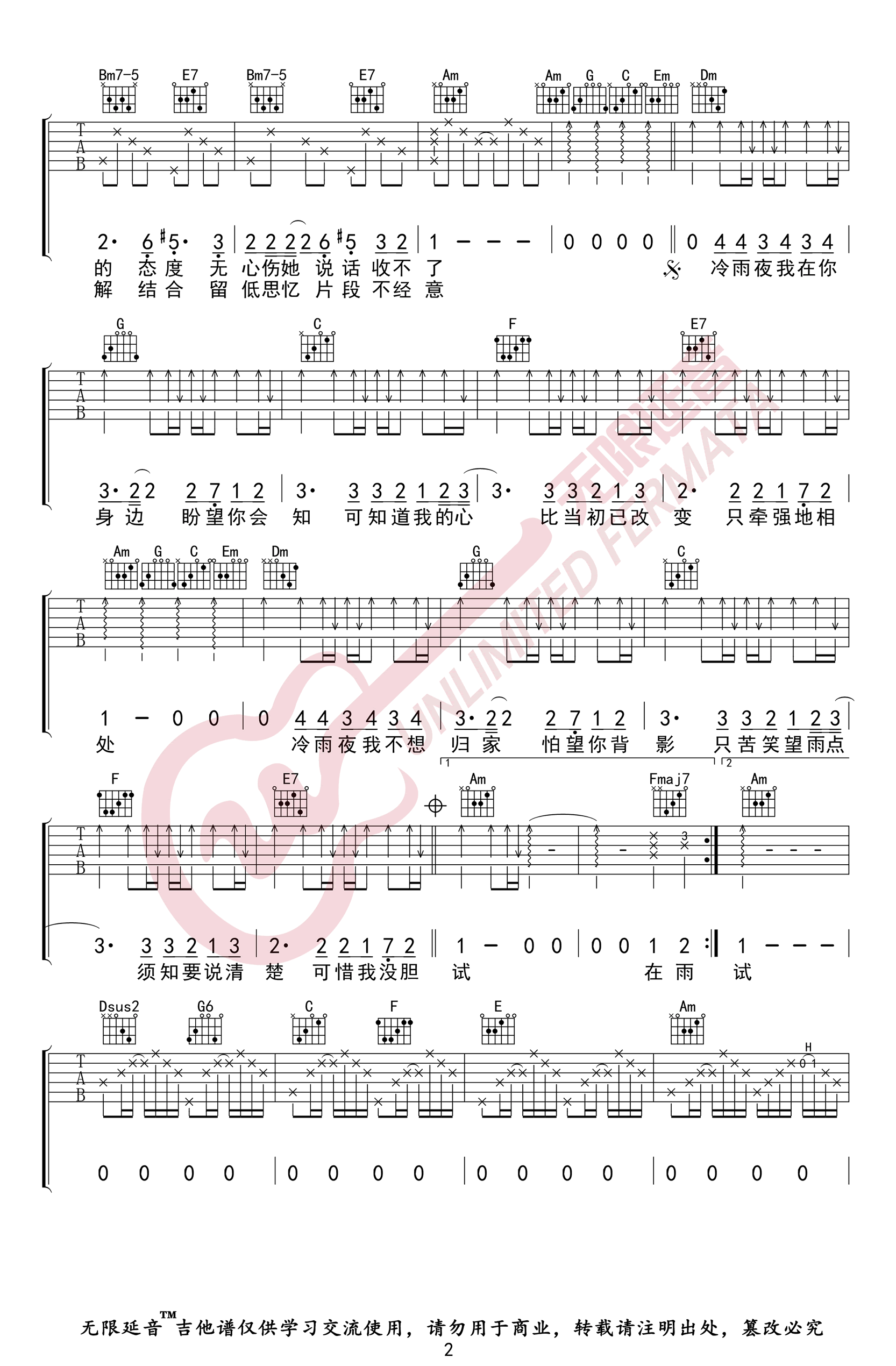 - Beyond《冷雨夜》吉他谱_C调_弹唱谱_高清版
