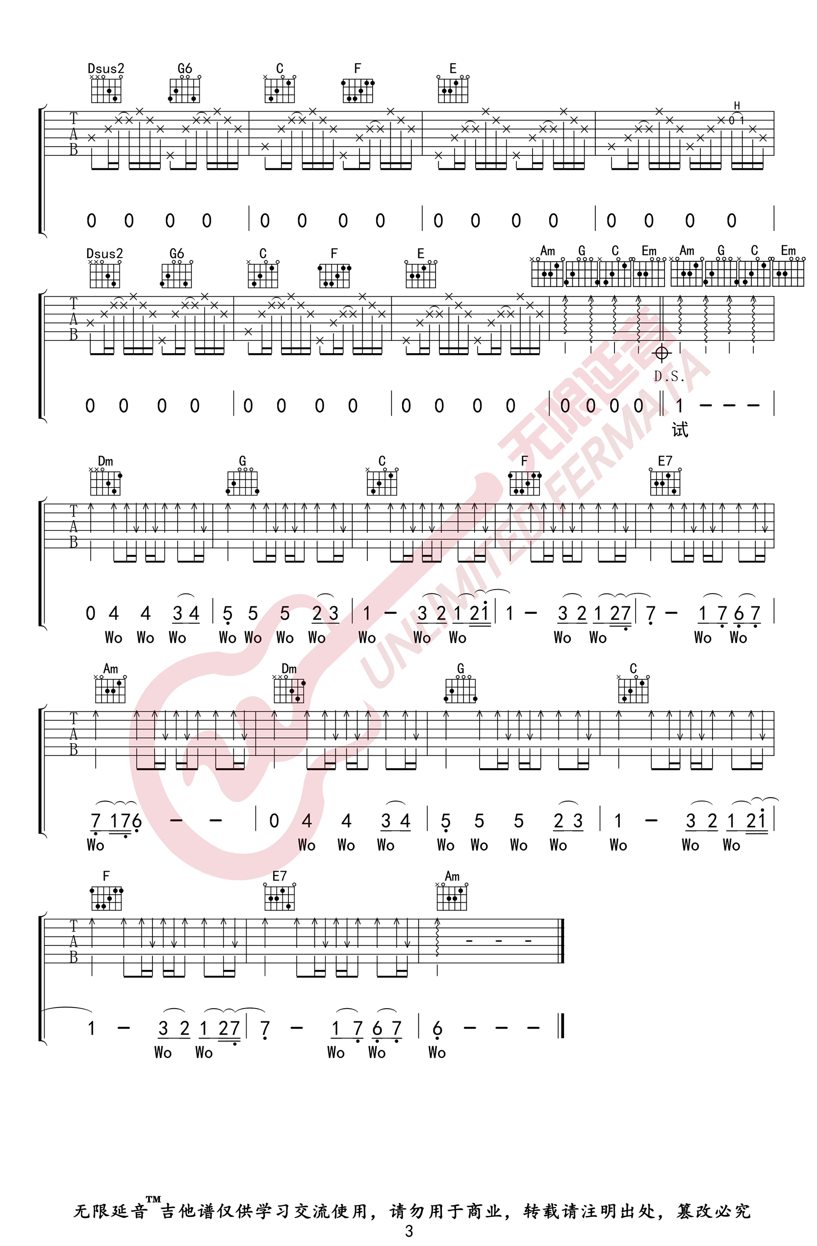 - 处处吻吉他谱_杨千嬅_C调六线谱_高清图片谱