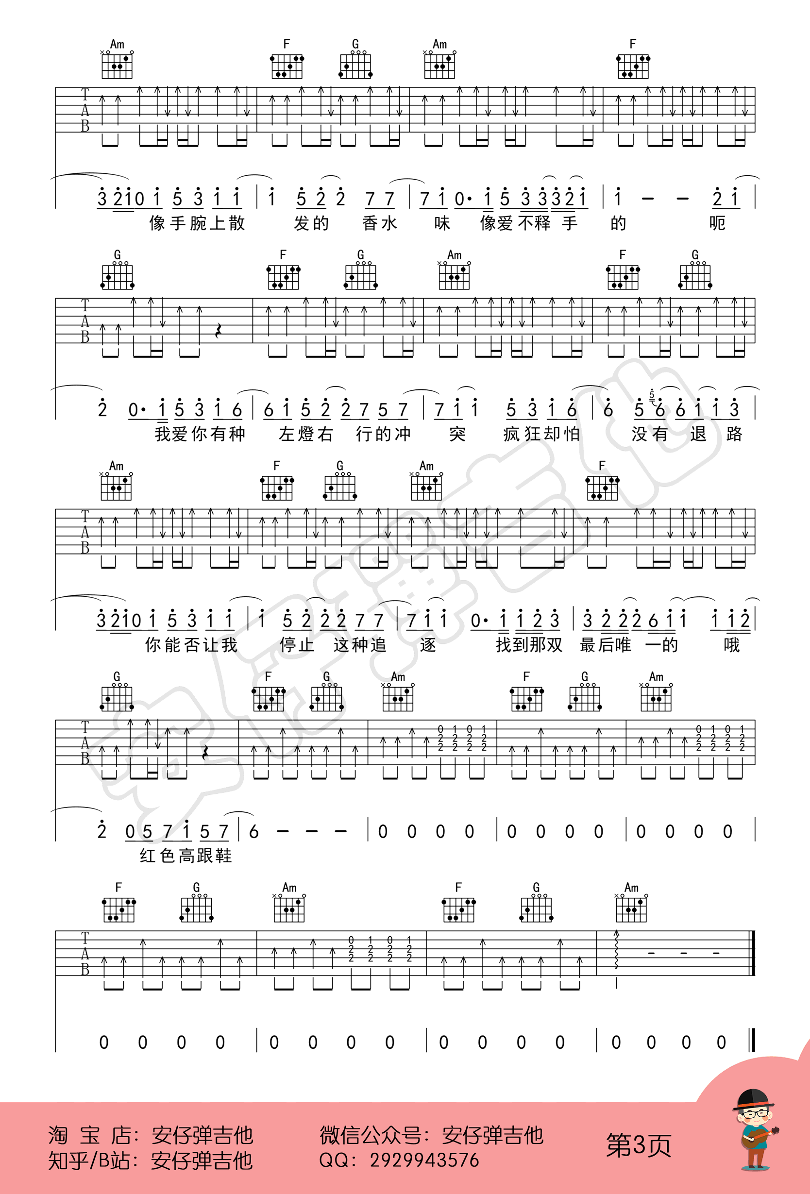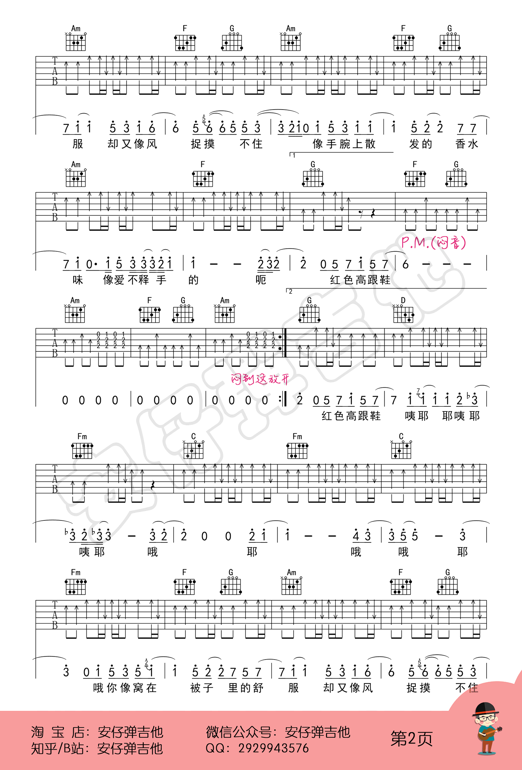 蔡健雅《红色高跟鞋》吉他谱,选用C调指法,女生变调夹夹二品,男生变调夹夹五品。红色高跟鞋六线谱,三张高清图片谱,安仔弹吉他编配出品,易唱网上传。