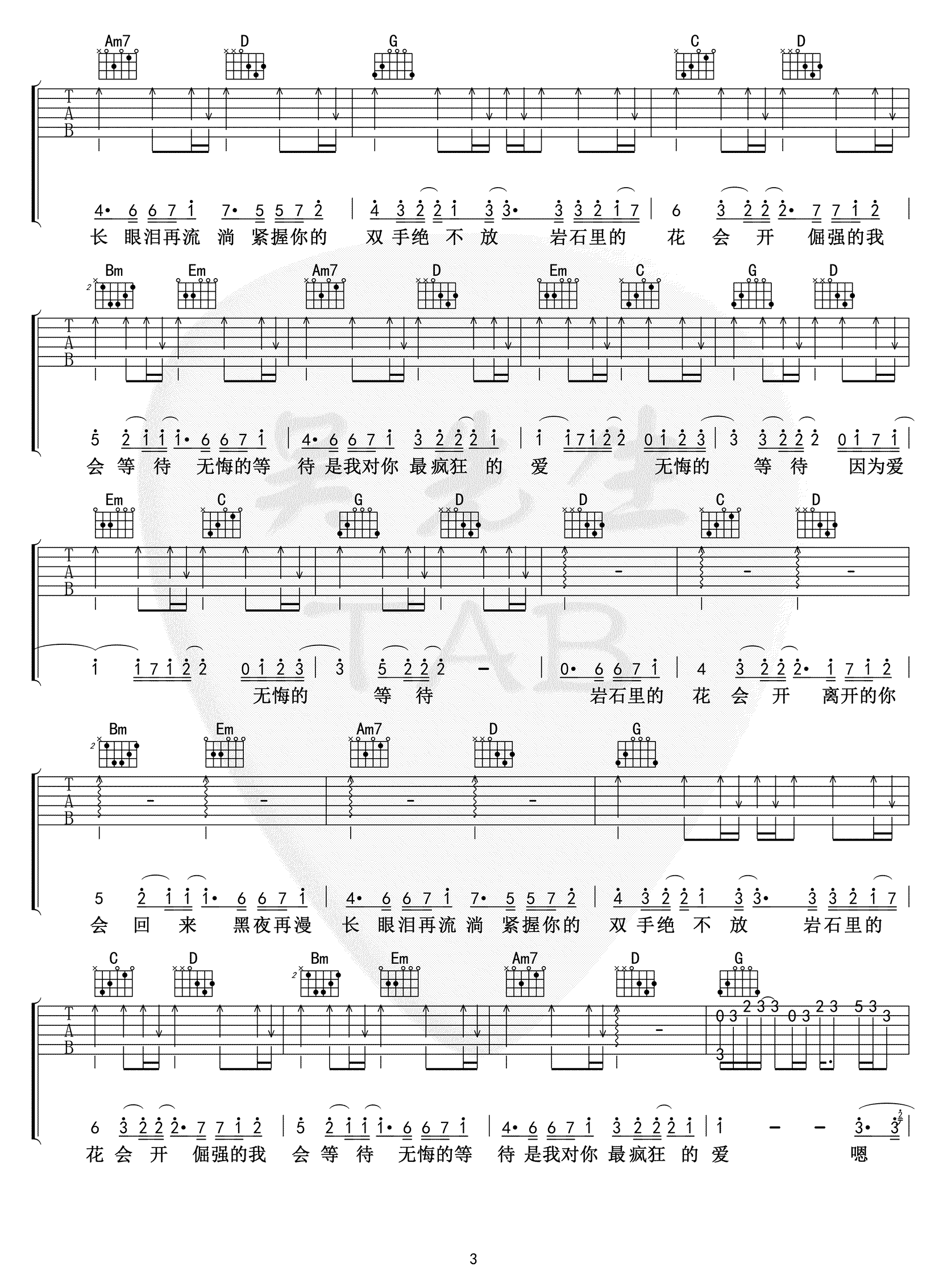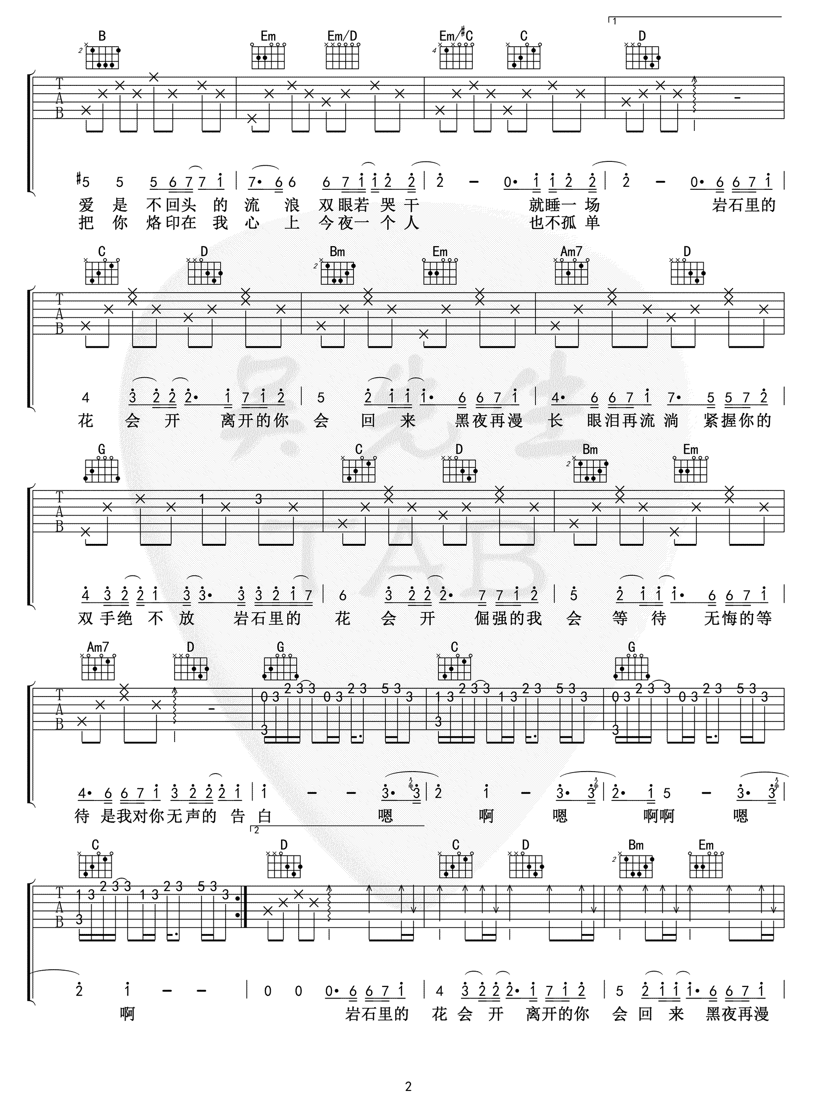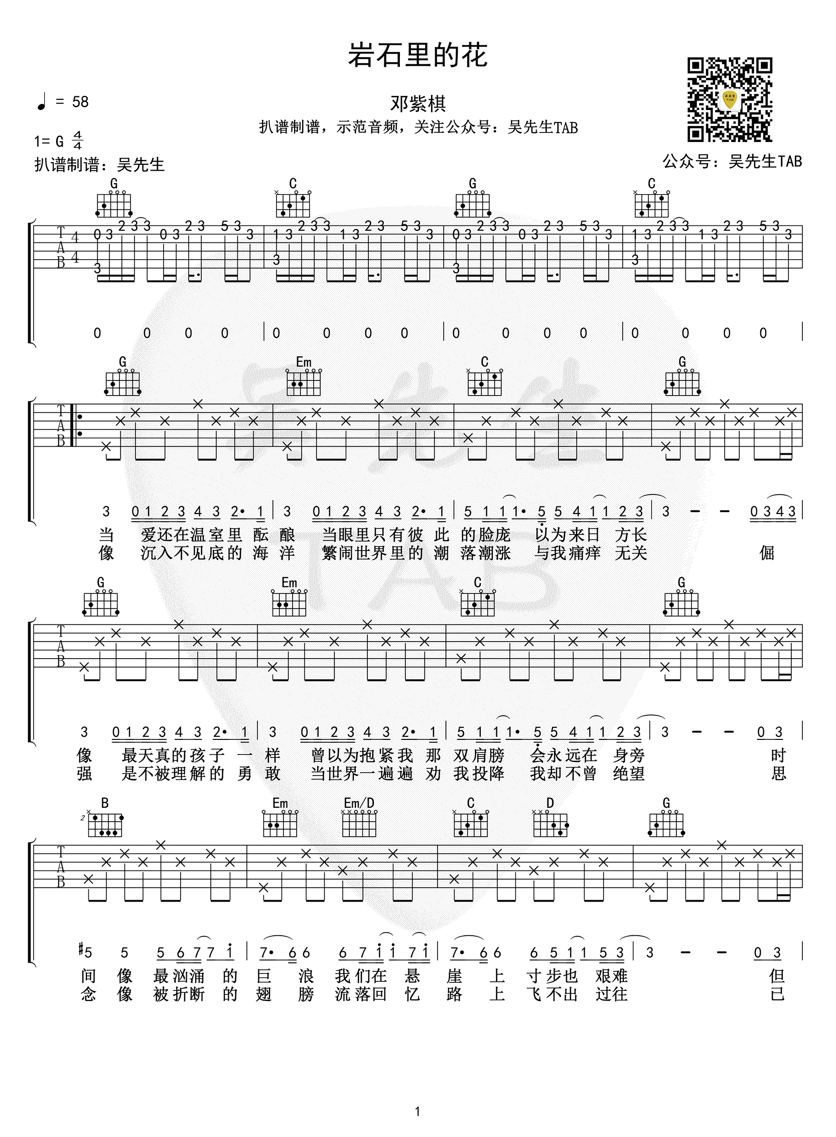 - 岩石里的花吉他谱_邓紫棋_G调_高清弹唱谱