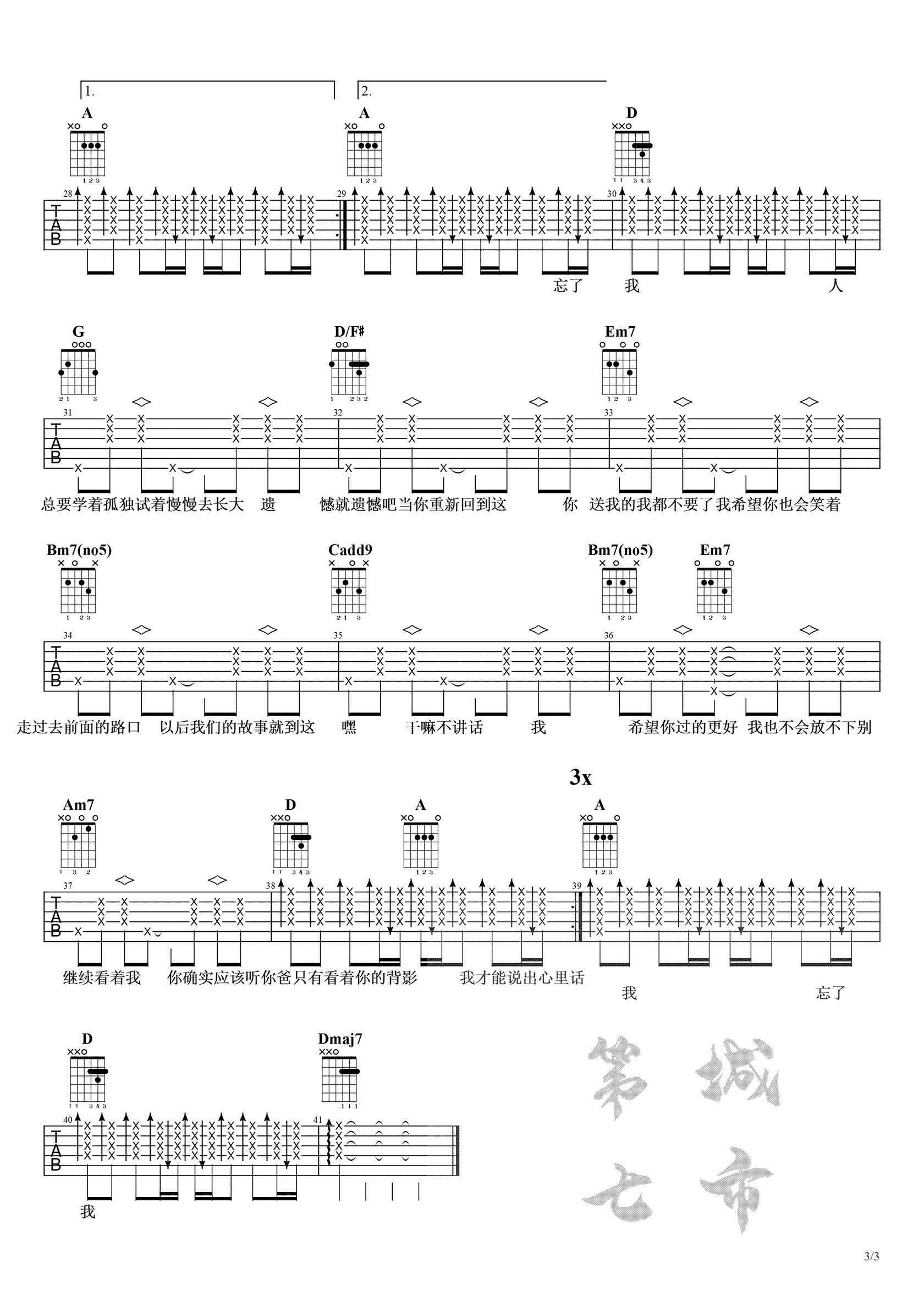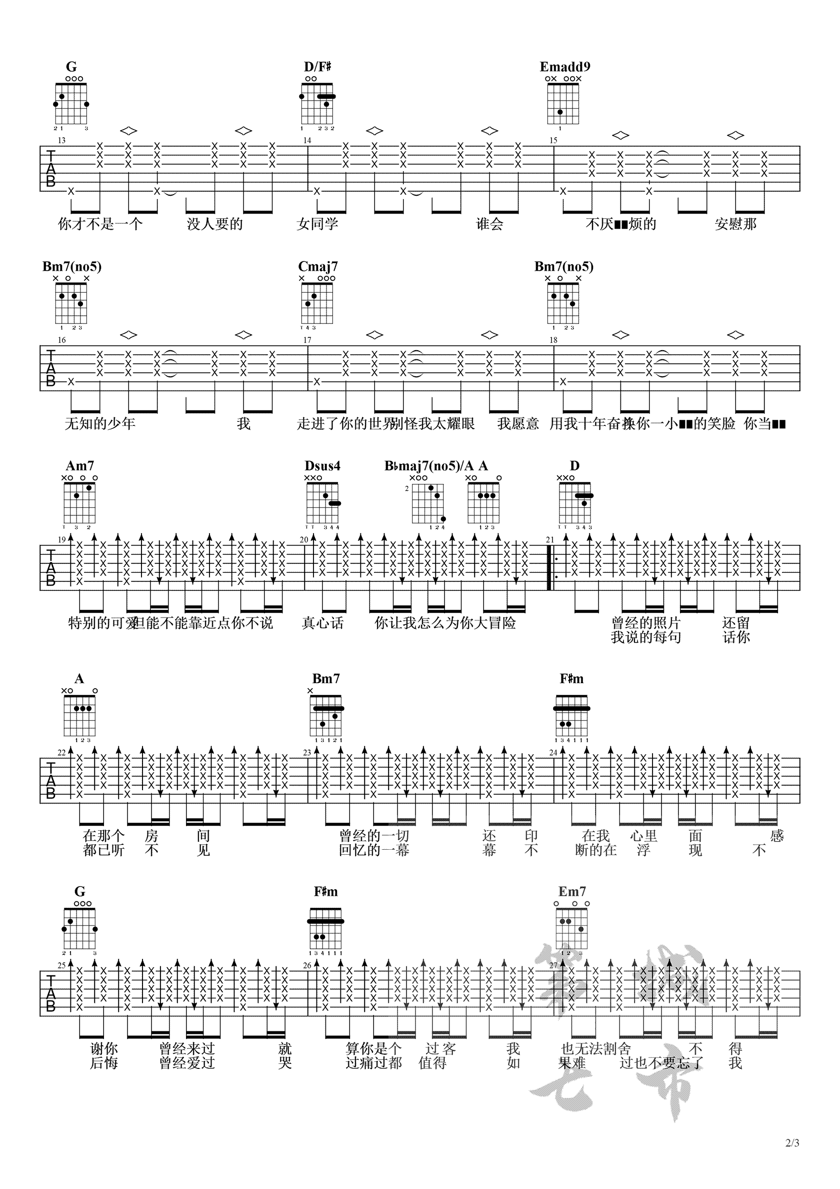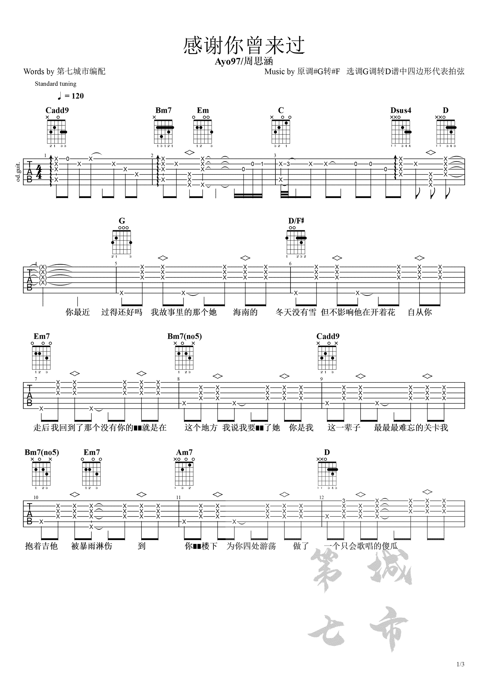 - 感谢你曾来过吉他谱_周思涵/Ayo97_G调男生版
