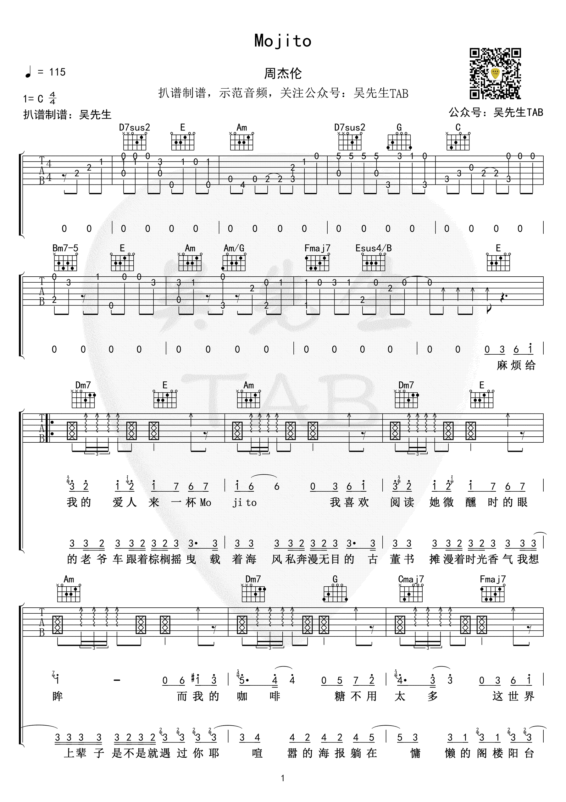 - 周杰伦《Mojito》吉他谱_C调_高清弹唱谱