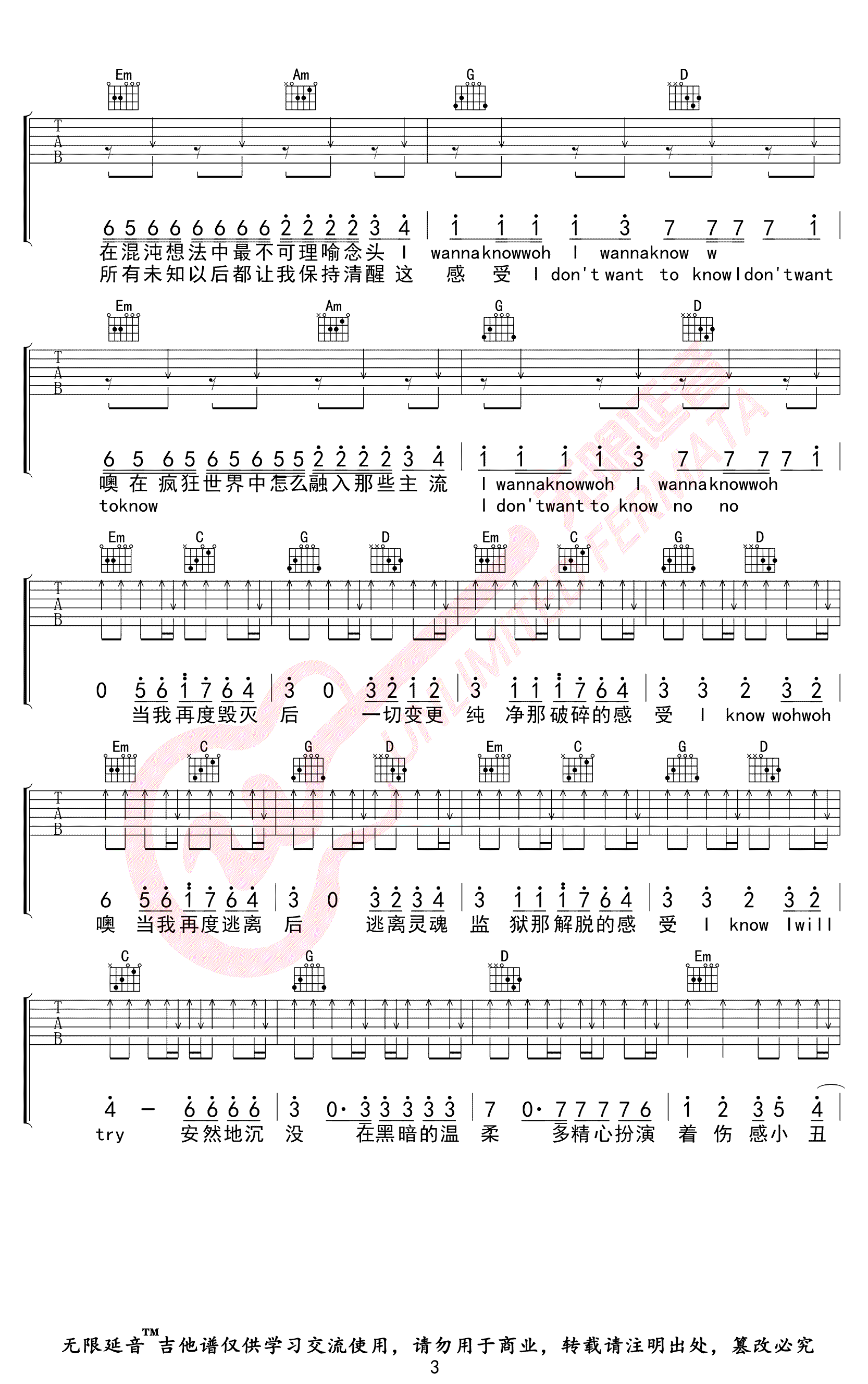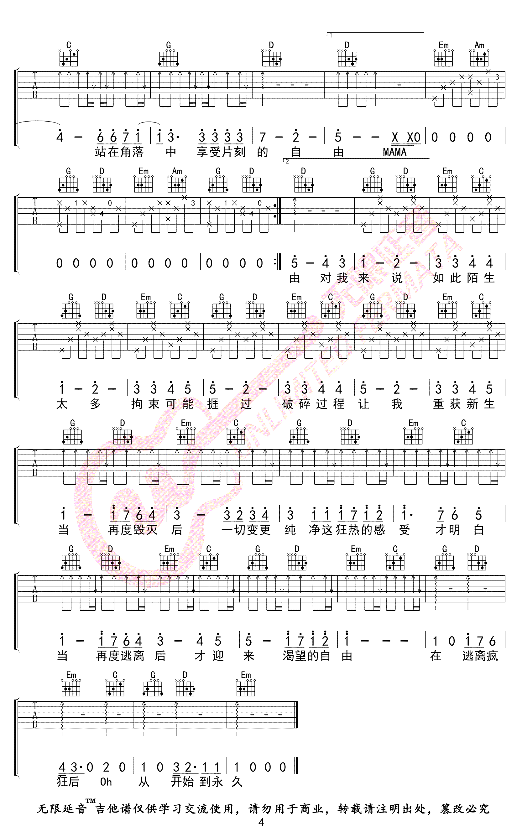 - 疯人院吉他谱_华晨宇_G调_高清弹唱谱