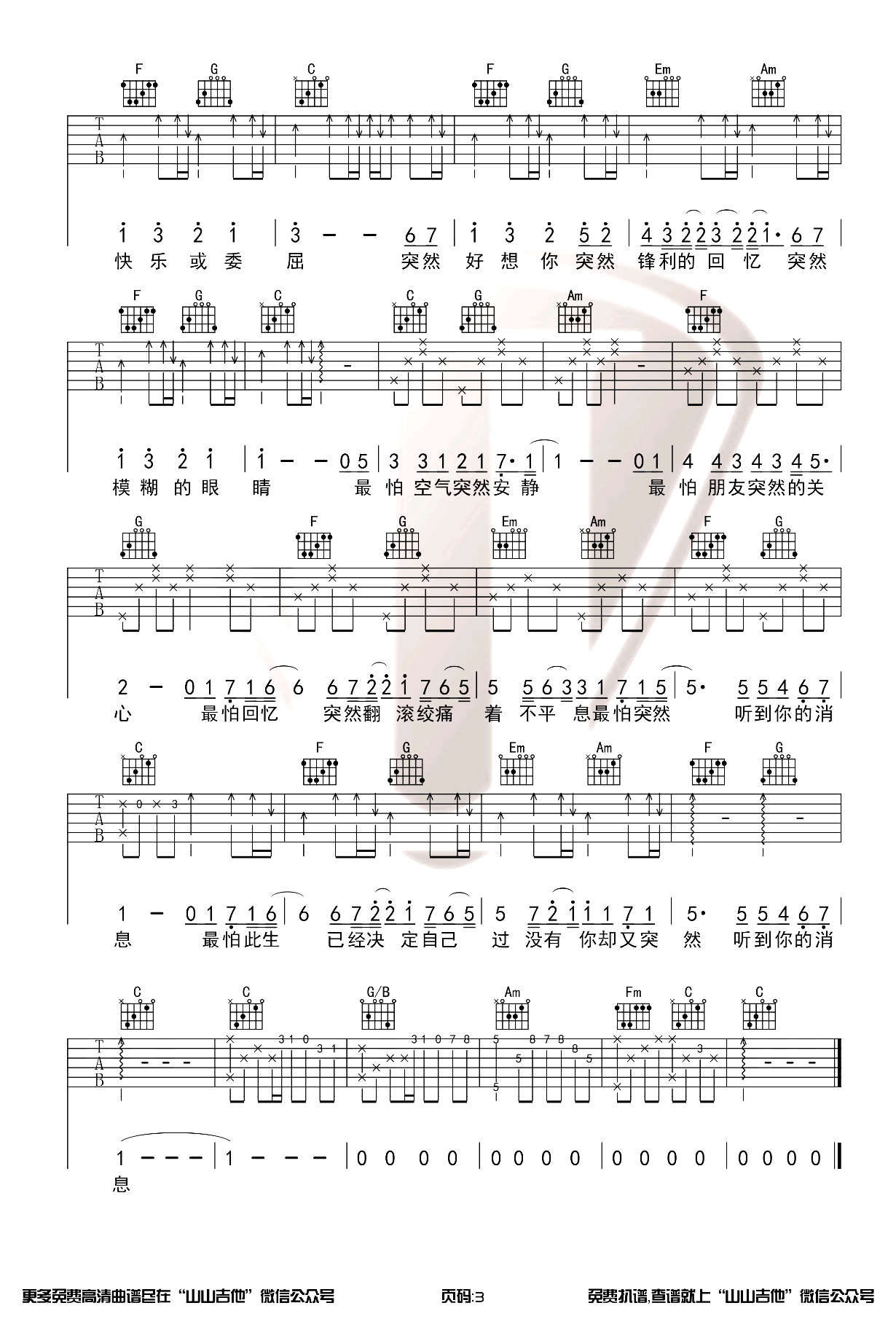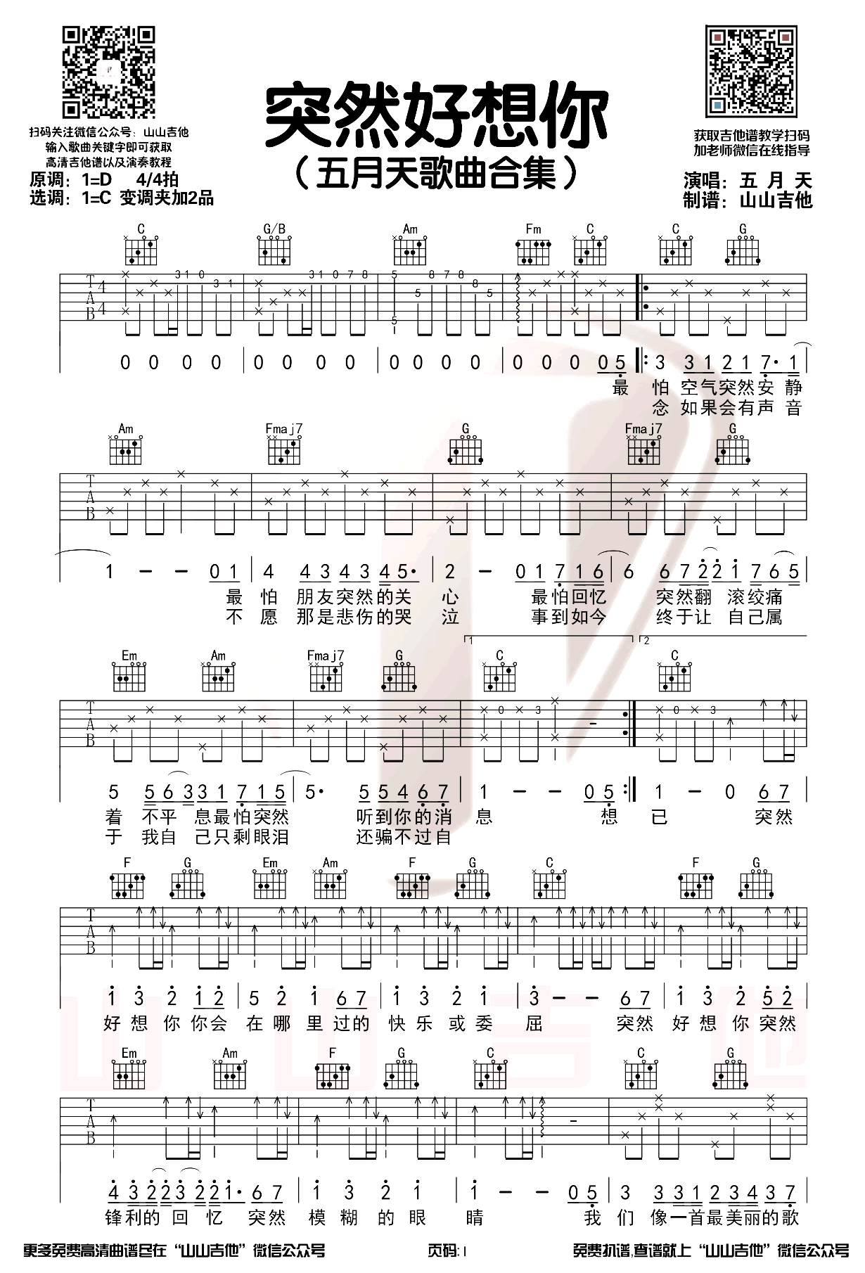 - 突然好想你吉他谱_五月天_C调原版_带前奏间奏