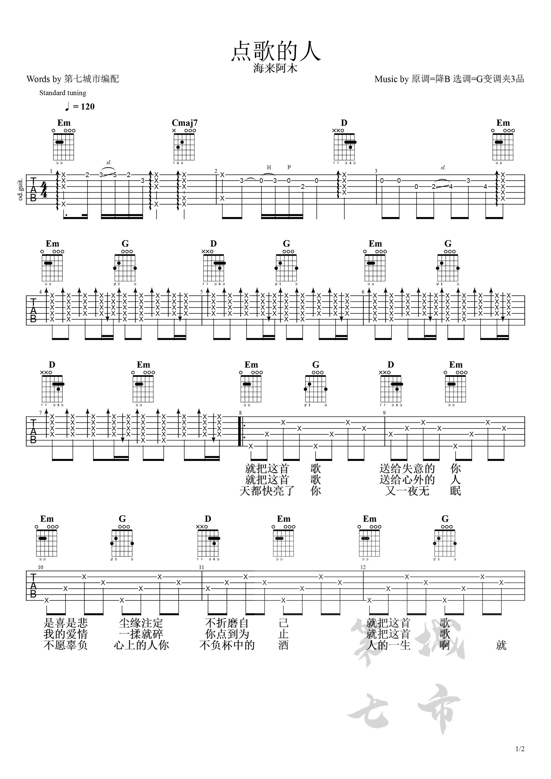 - 点歌的人吉他谱_海来阿木_G调原版_吉他弹唱演示