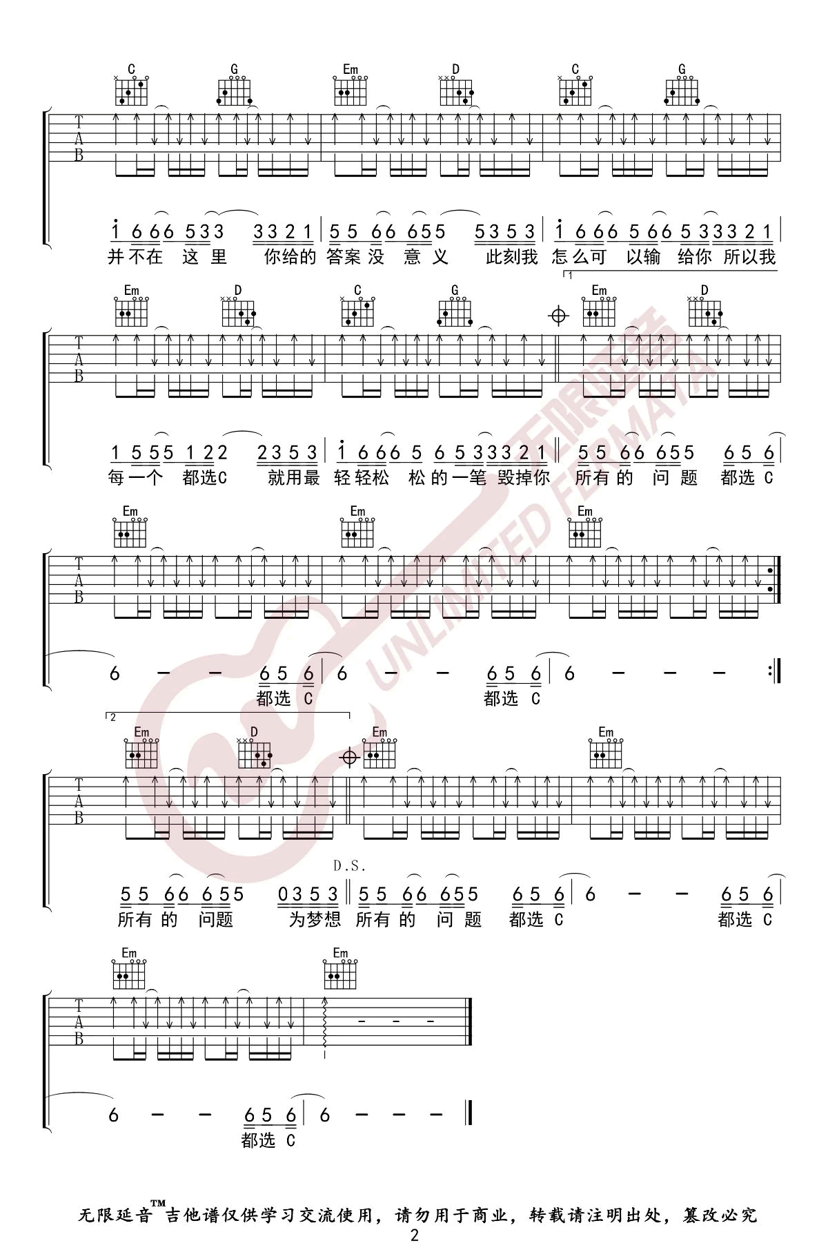 - 全世界最好的你吉他谱_许嵩_C调_弹唱六线谱