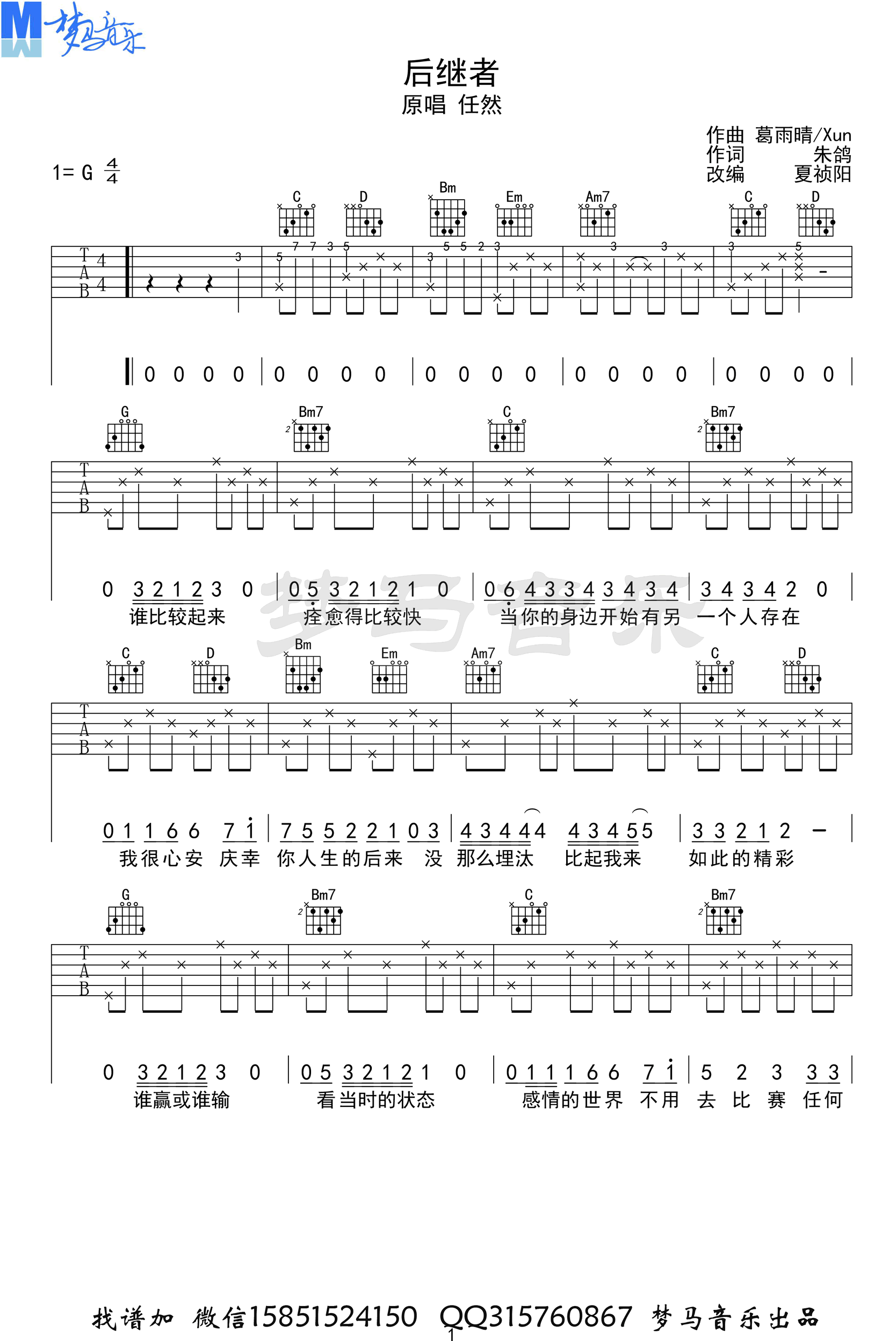 - 后继者吉他谱_任然_G调弹唱谱_高清版
