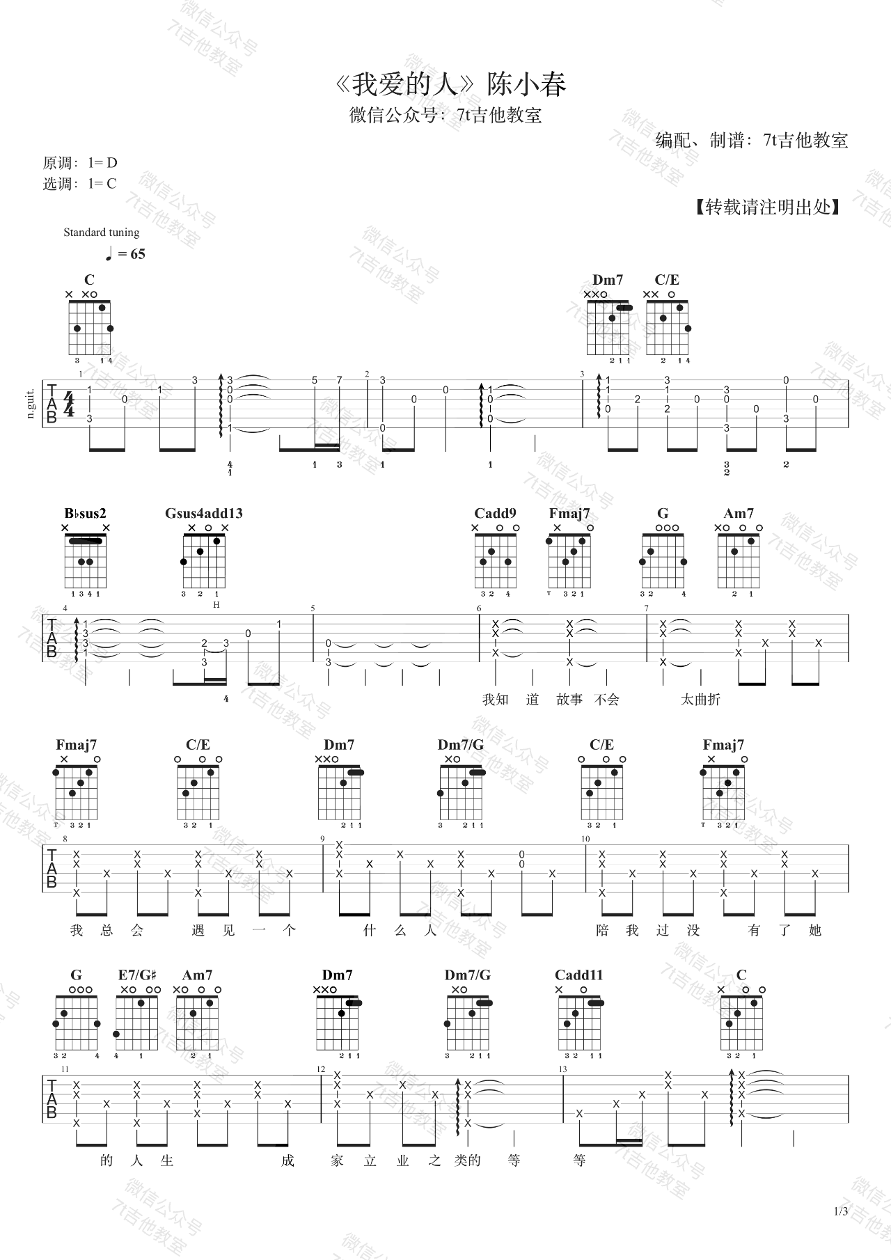 - 我爱的人吉他谱_陈小春_C调_吉他弹唱示范视频