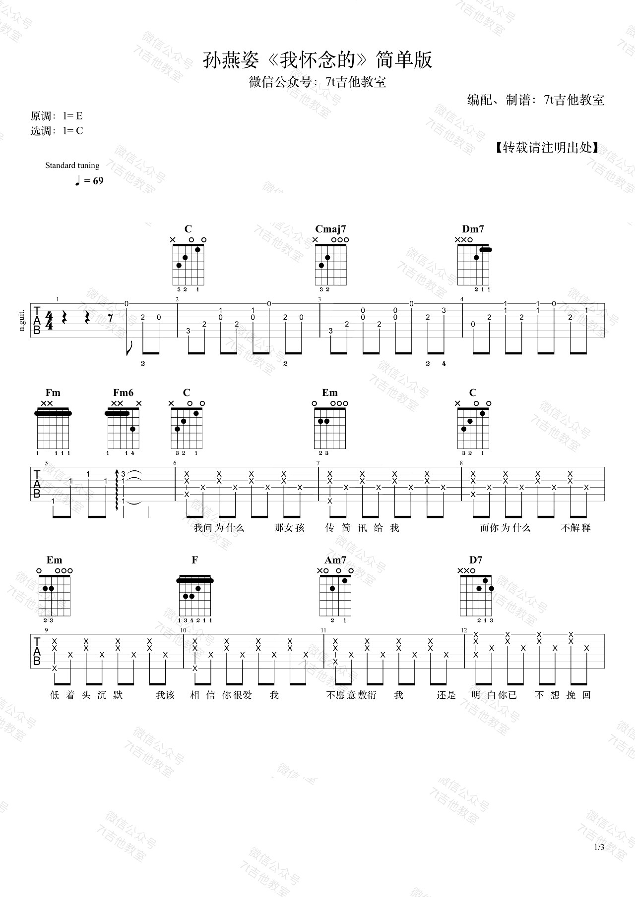 - 我怀念的吉他谱_C调简单版_孙燕姿_弹唱演示视频