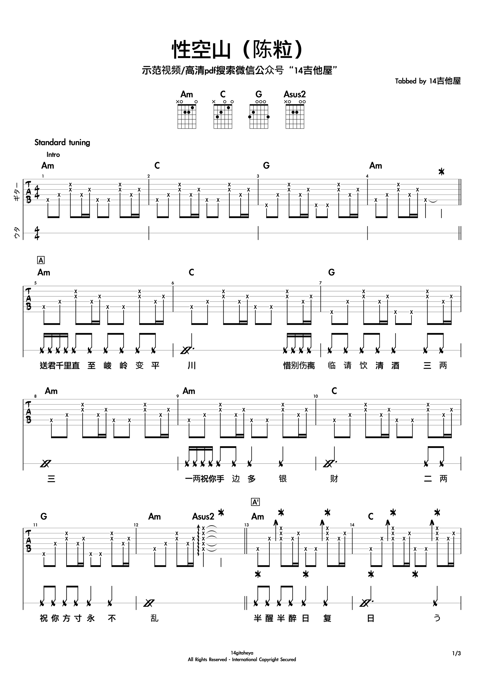 - 性空山吉他谱_陈粒_民谣歌曲_弹唱六线谱