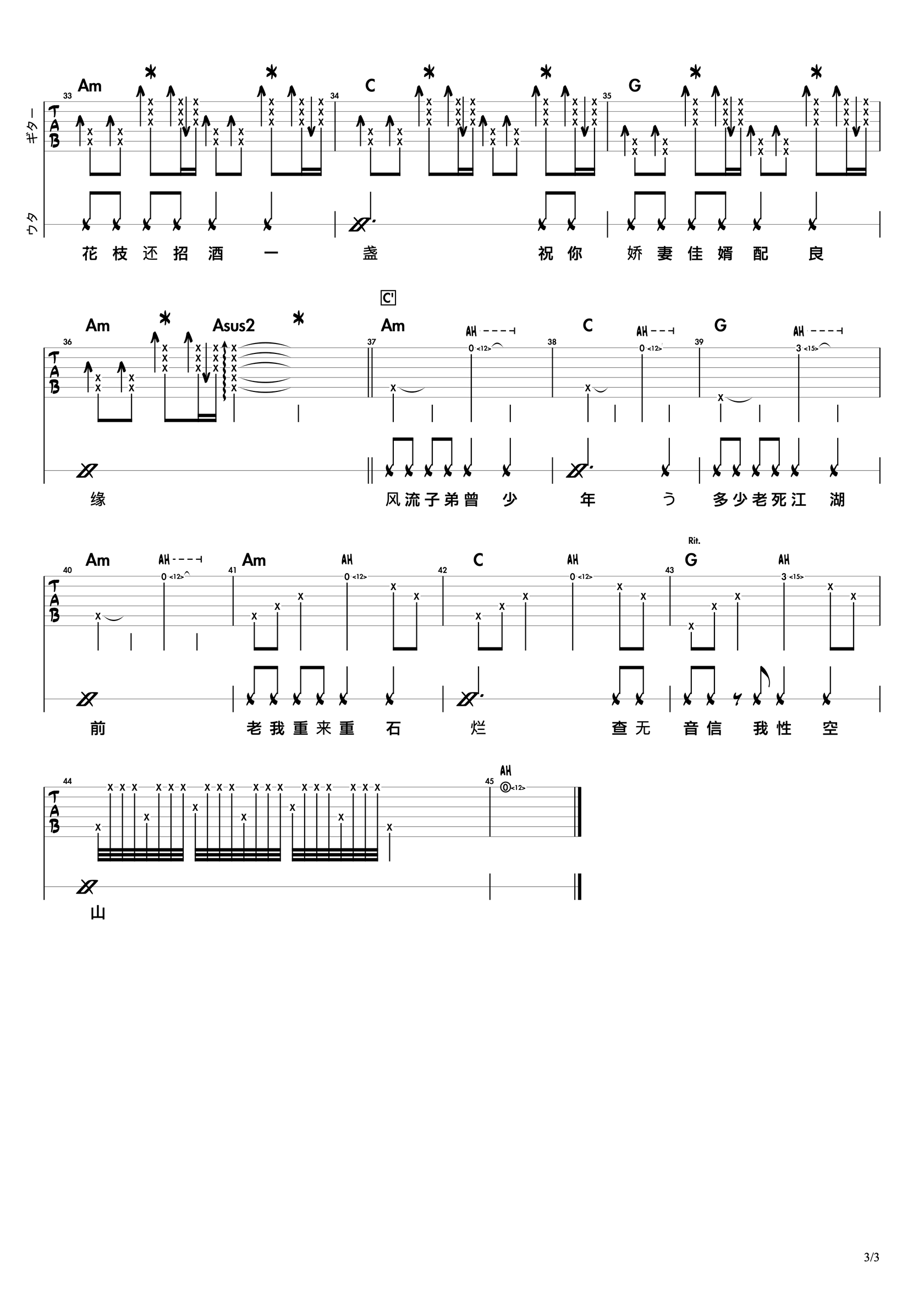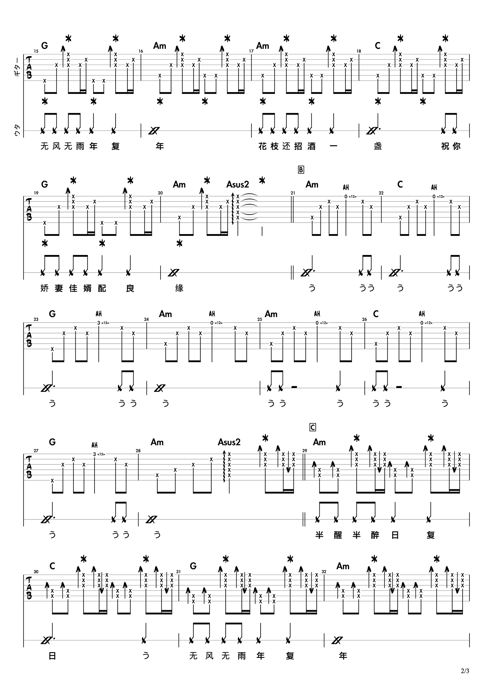 - 渐冷吉他谱_雪二《渐冷》C调弹唱_原版六线谱