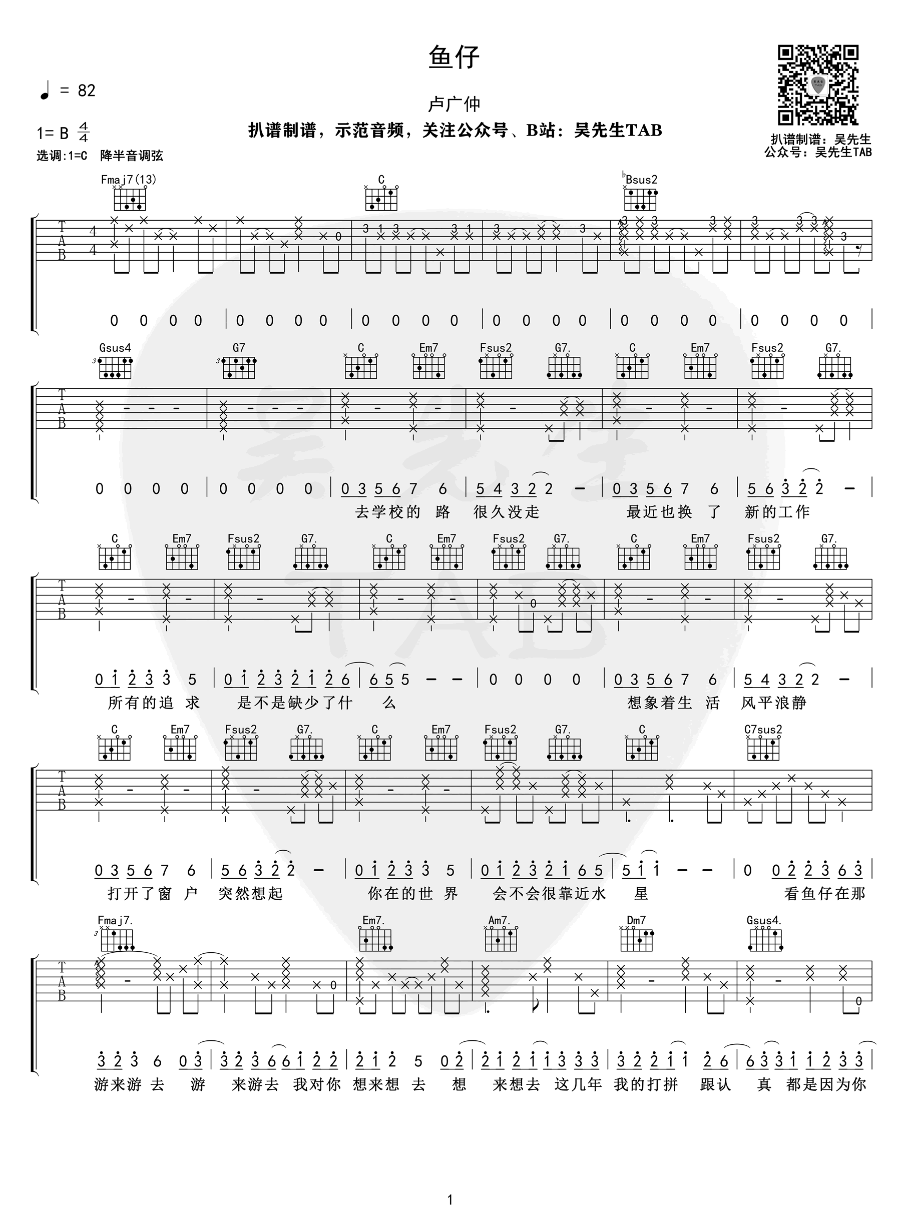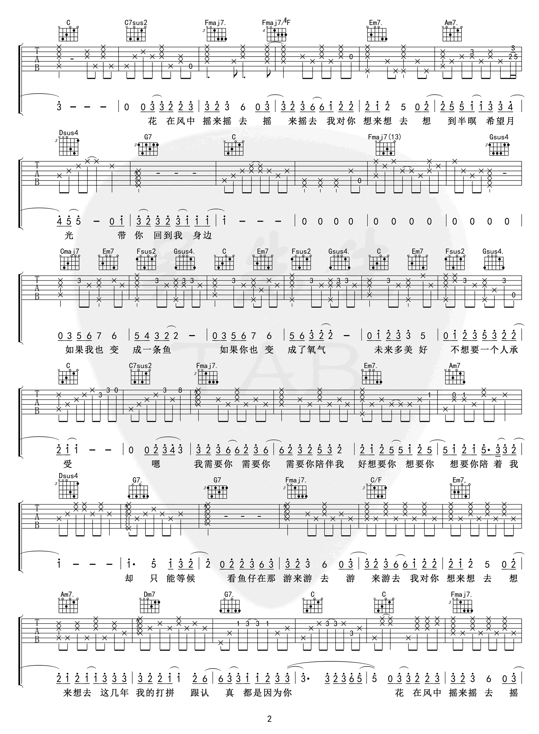 - 千千万万吉他谱_深海鱼子酱_G调弹唱谱_原版六线谱