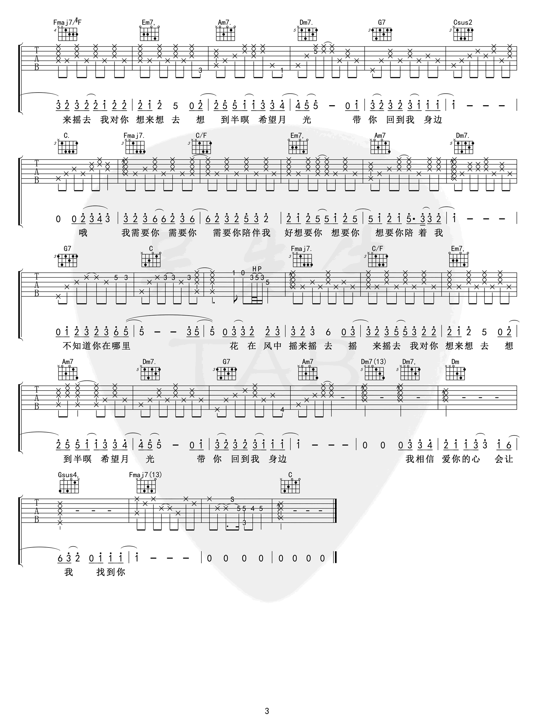 - 星辰大海吉他谱_黄霄云_C调原版_弹唱六线谱
