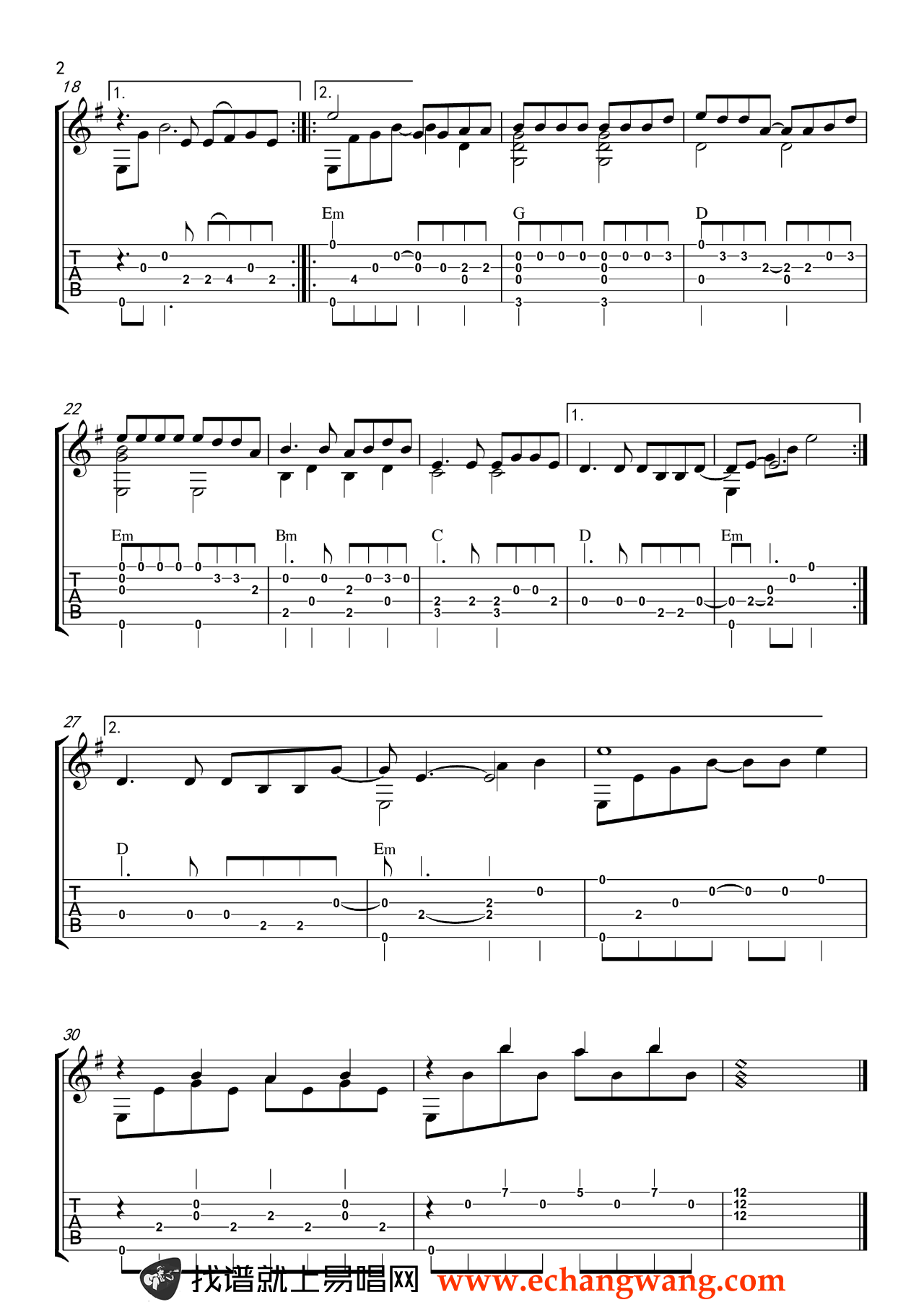 - 贝加尔湖畔指弹吉他谱_李健_独奏指弹谱_高清版