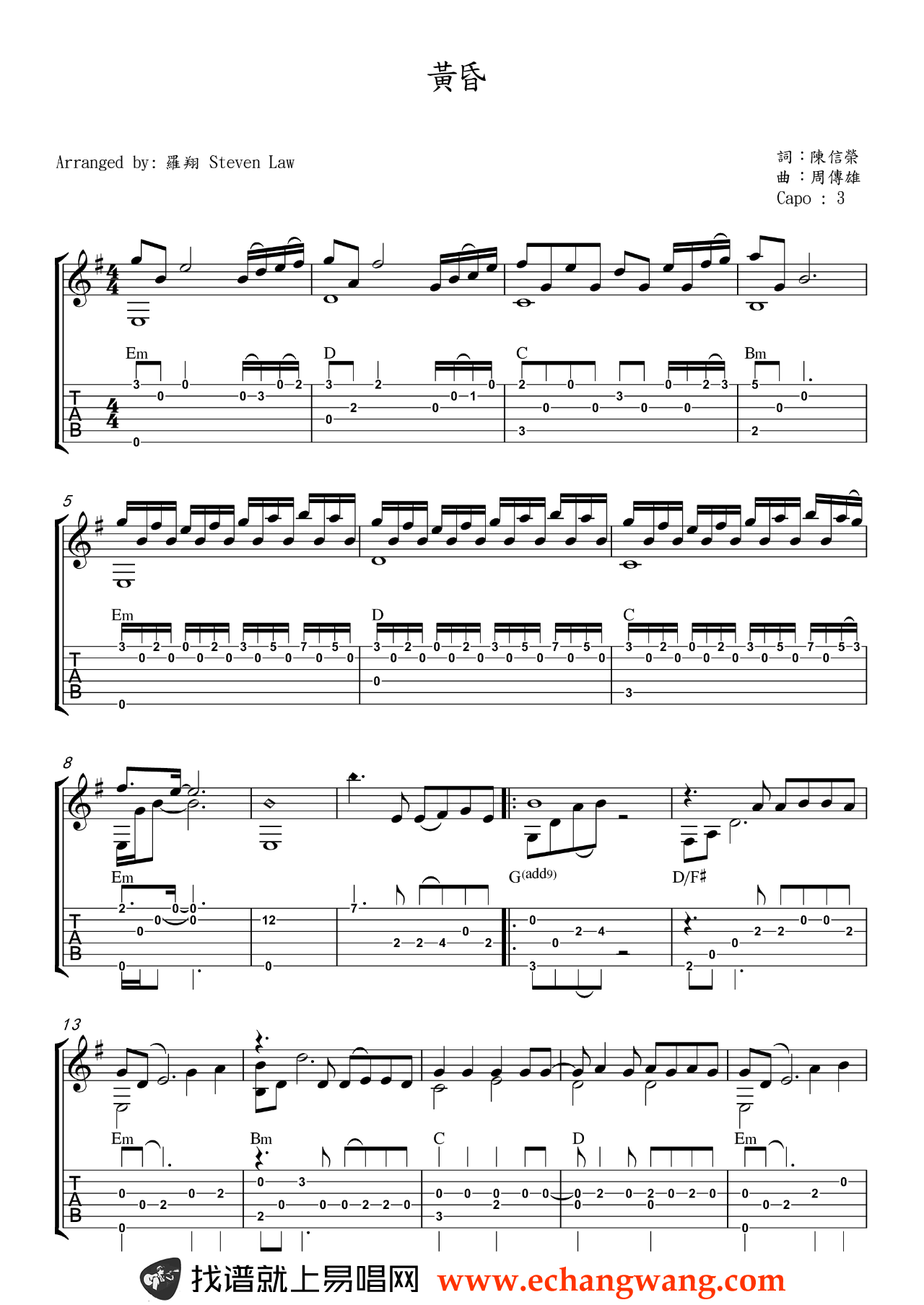 - 周传雄《黄昏》指弹谱_吉他独奏谱_高清图片谱