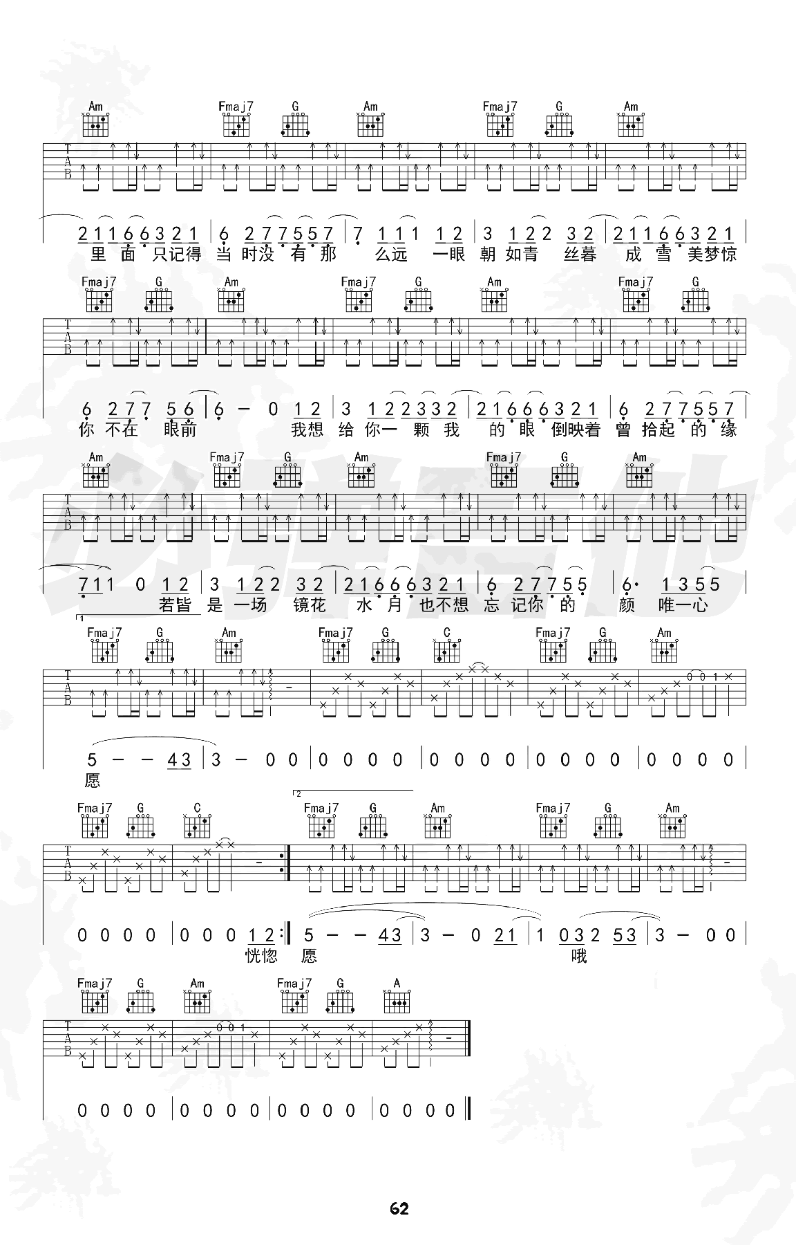 - 泸沽湖吉他谱_麻园诗人_G调_弹唱六线谱