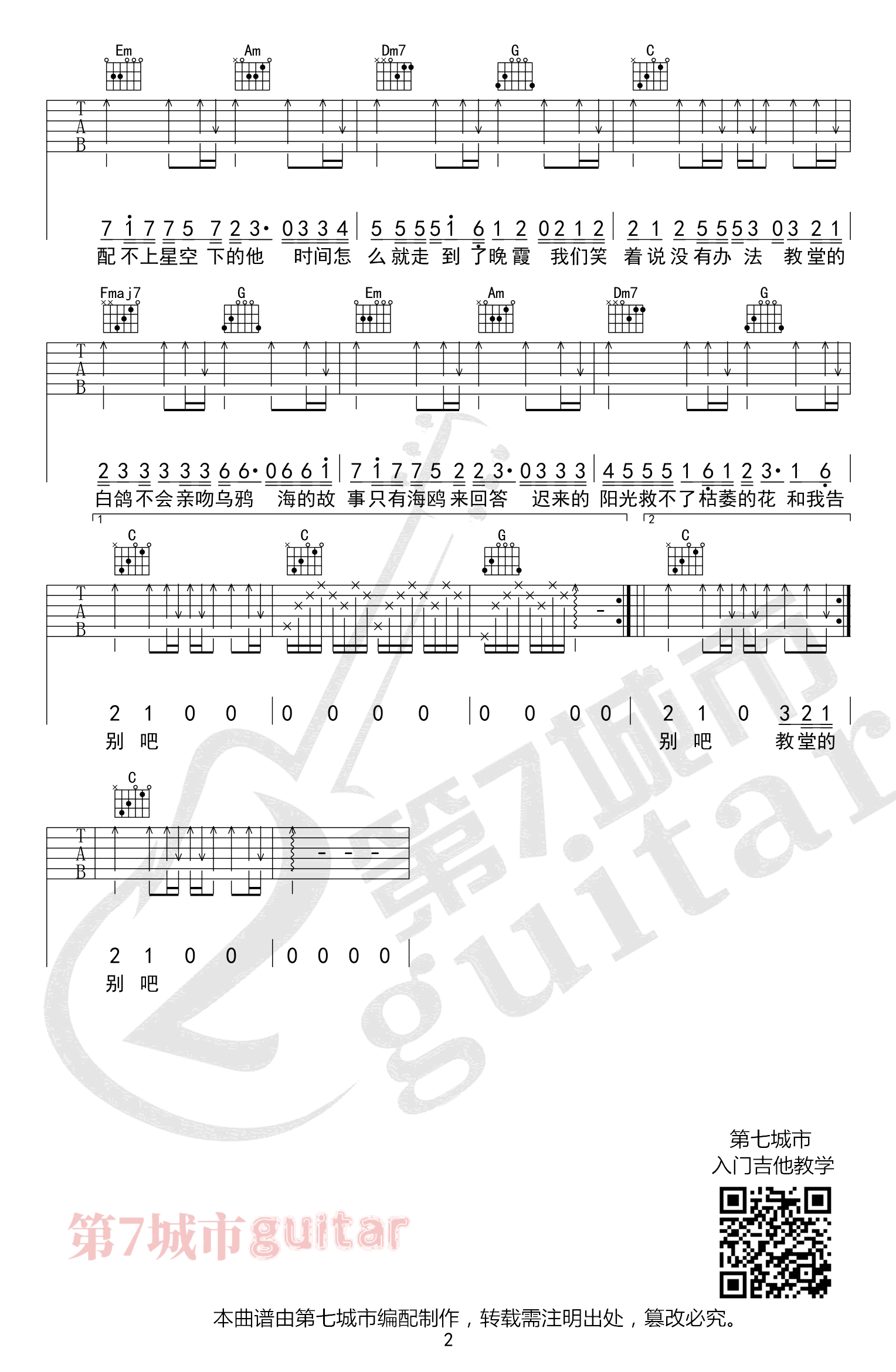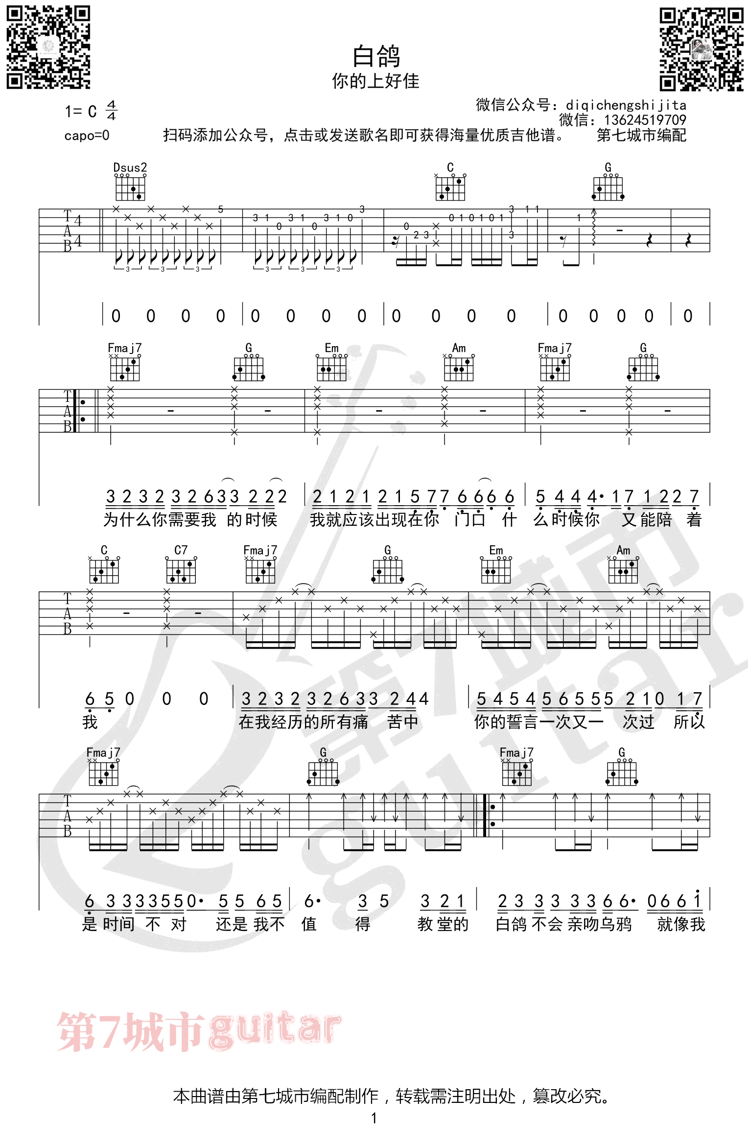 - 白鸽吉他谱_你的上好佳_C调弹唱谱_白鸽六线谱