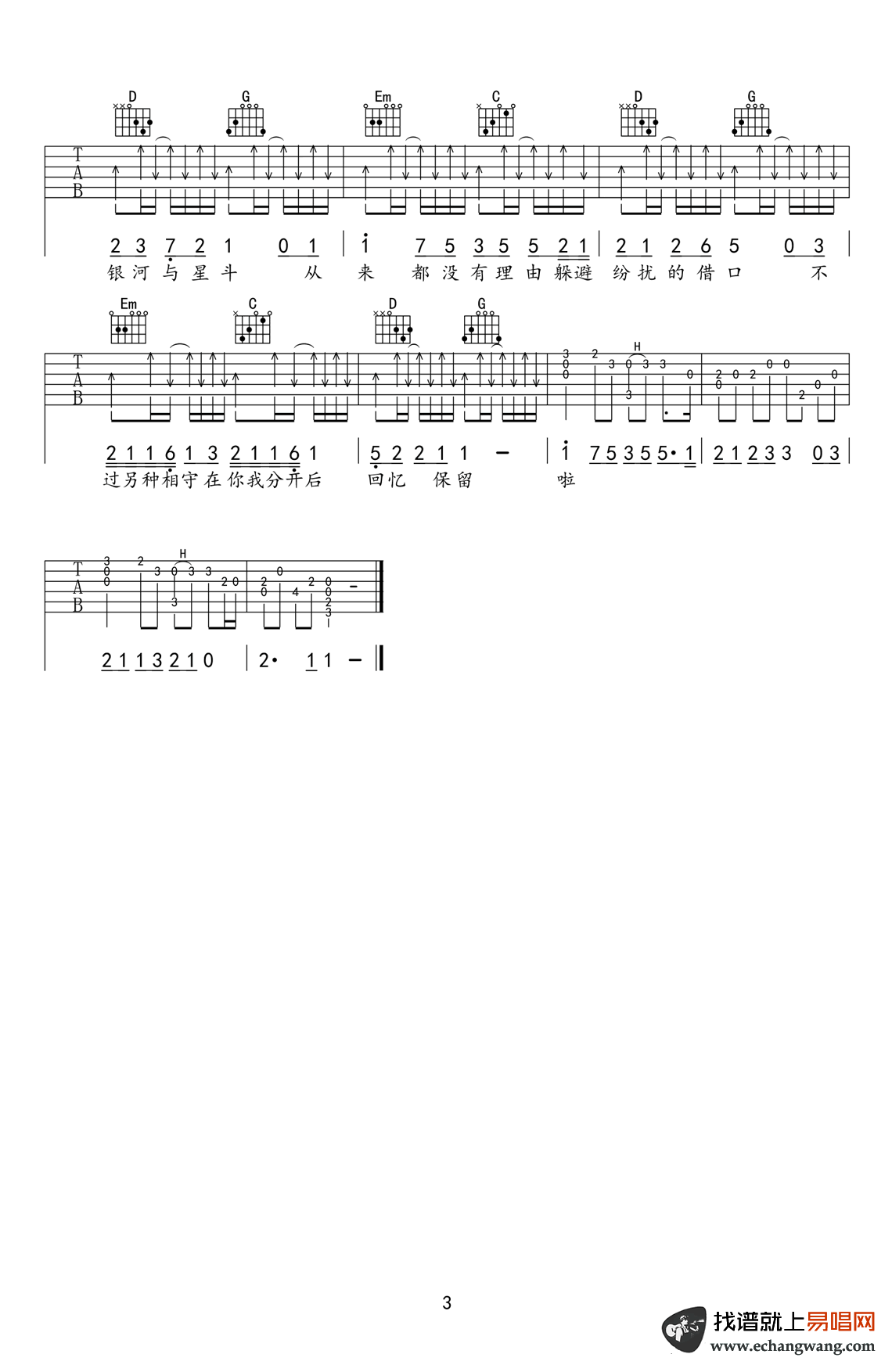- 银河与星斗吉他谱_yihuik苡慧_G调_弹唱六线谱