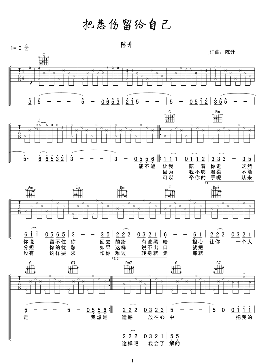 - 我和我的祖国吉他谱_陈彼得_C调六线谱_高清版