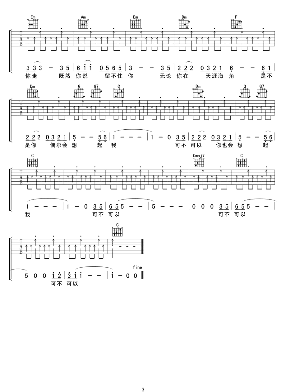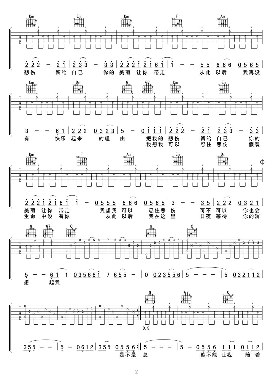 - 多年以后吉他谱_大欢_G调简单版_弹唱六线谱