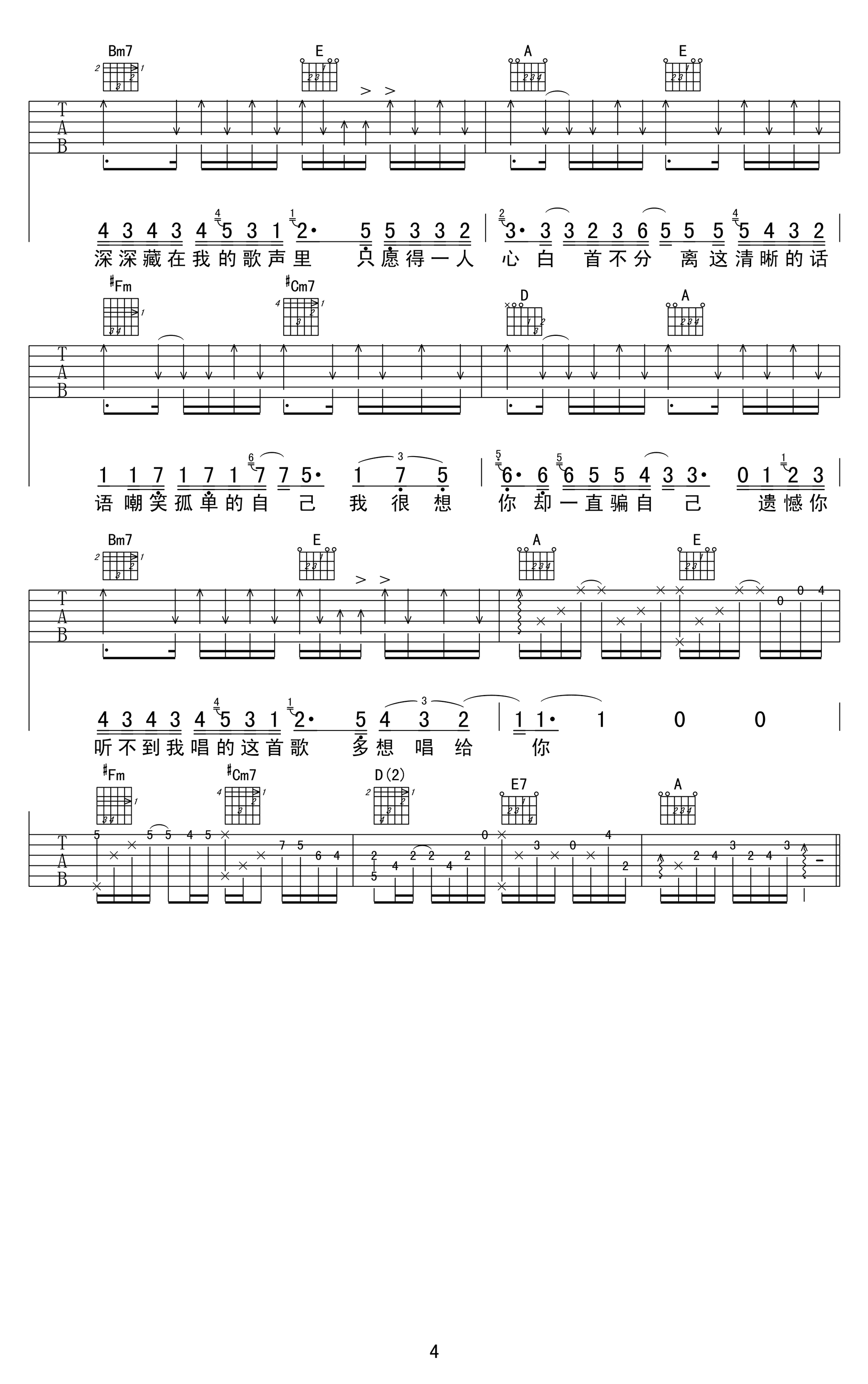 - 隔壁老樊《四块五》吉他谱_C调_弹唱六线谱