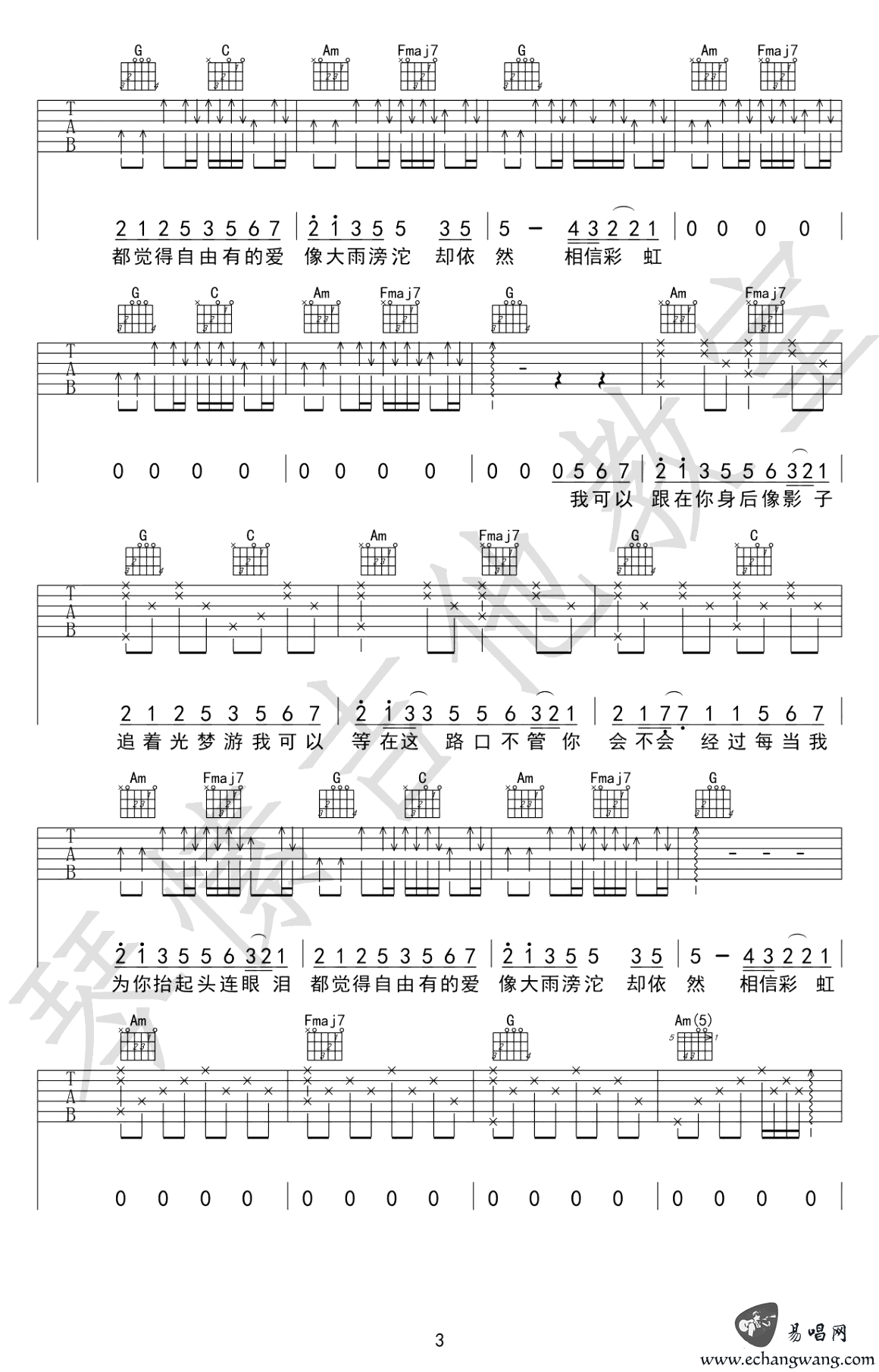 - 人间沙吉他谱_陈学冬_电影《爵迹》片尾曲_手写六线谱