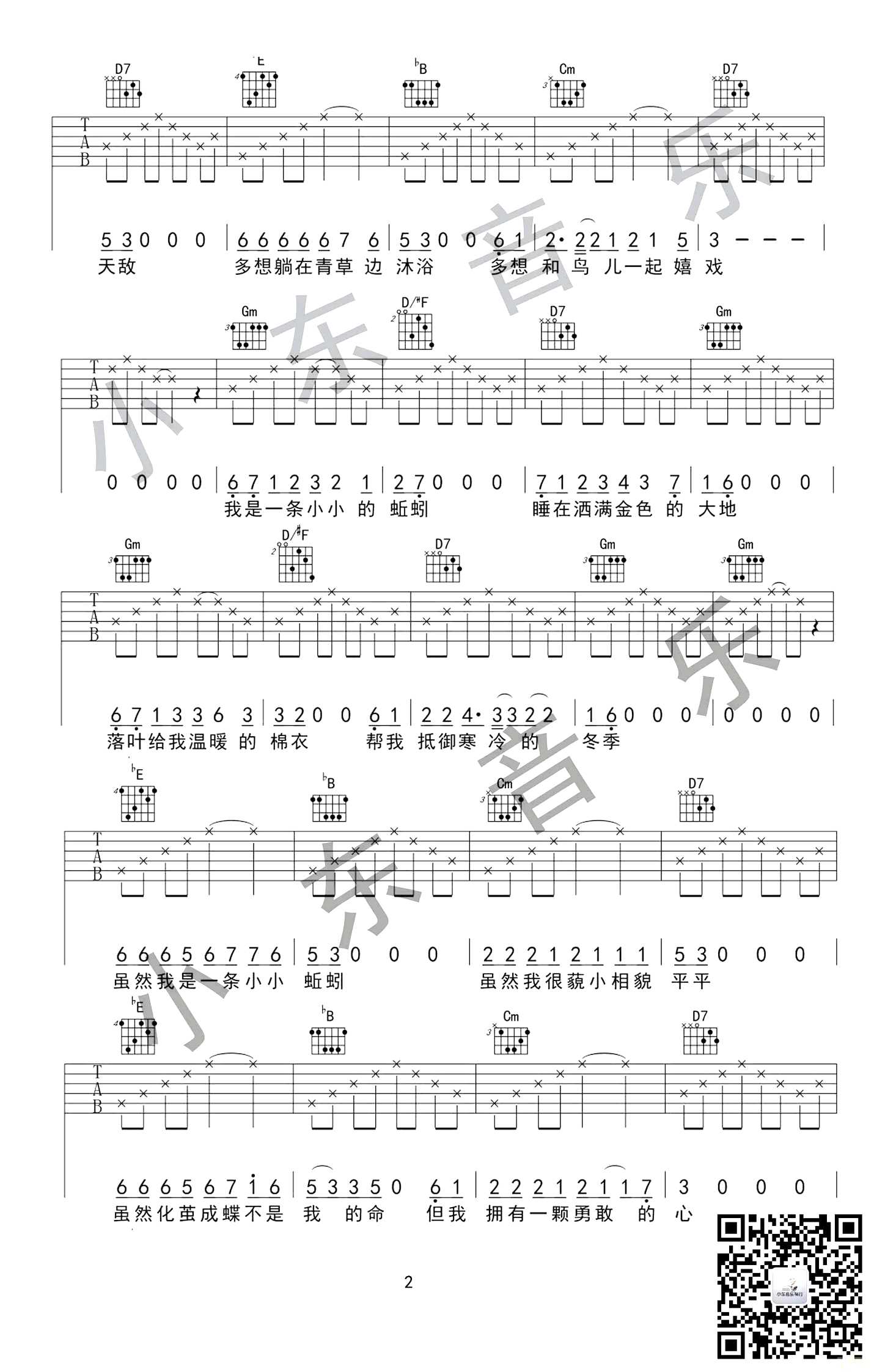 - 蚯蚓尤克里里谱 杨紫《欢乐颂2》插曲 ukulele谱