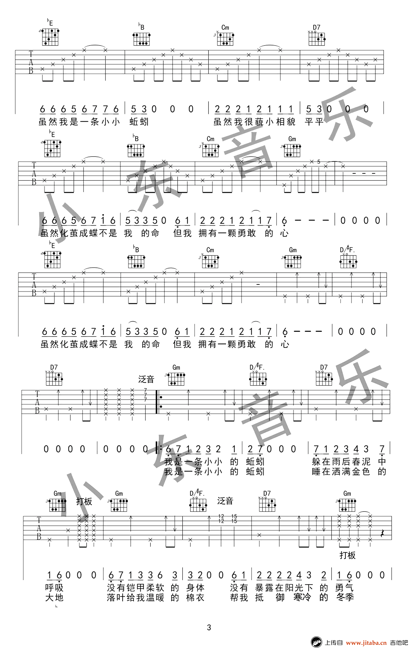 蚯蚓吉他谱 杨紫《欢乐颂2》插曲 蚯蚓六线谱(2)