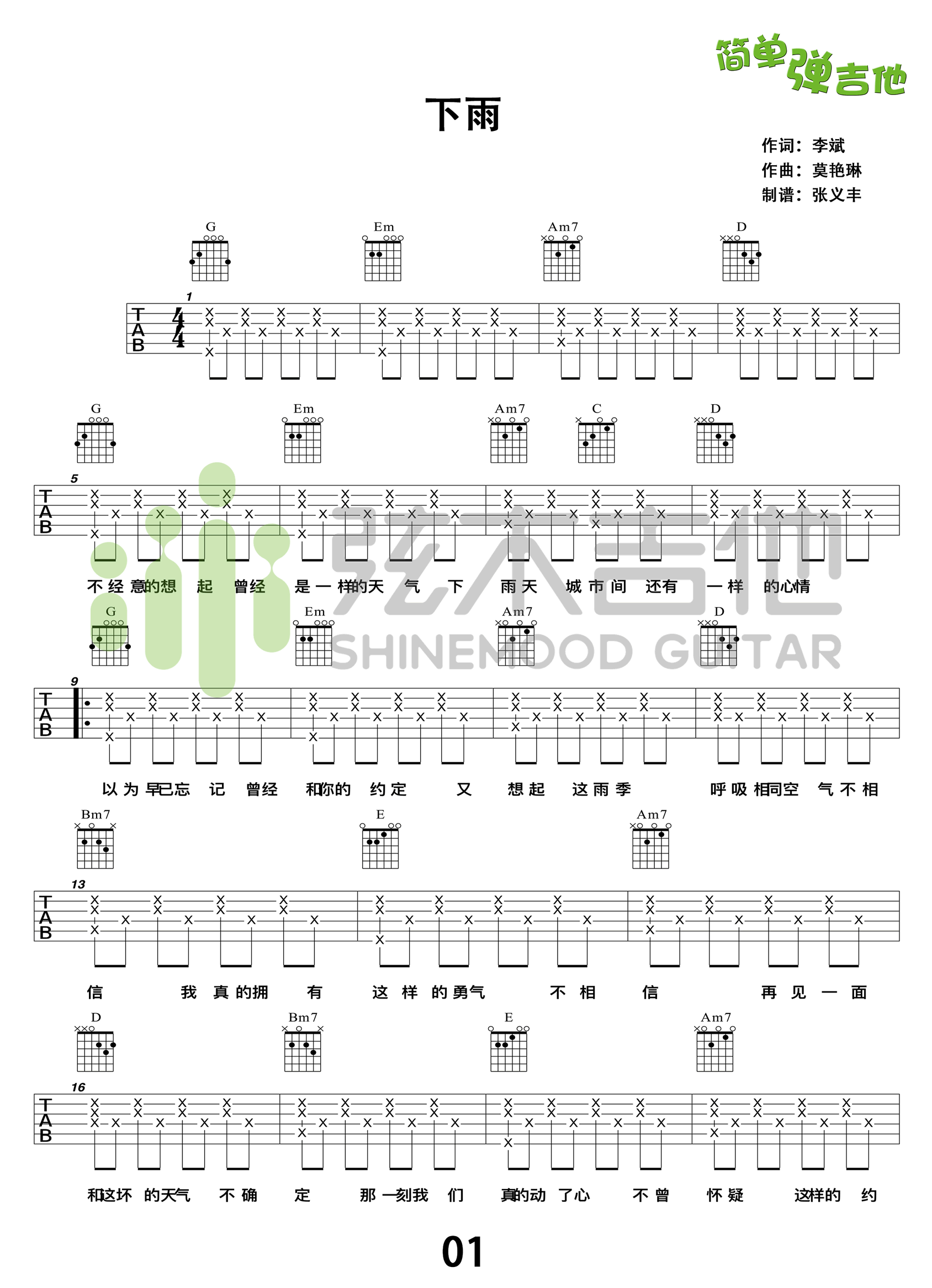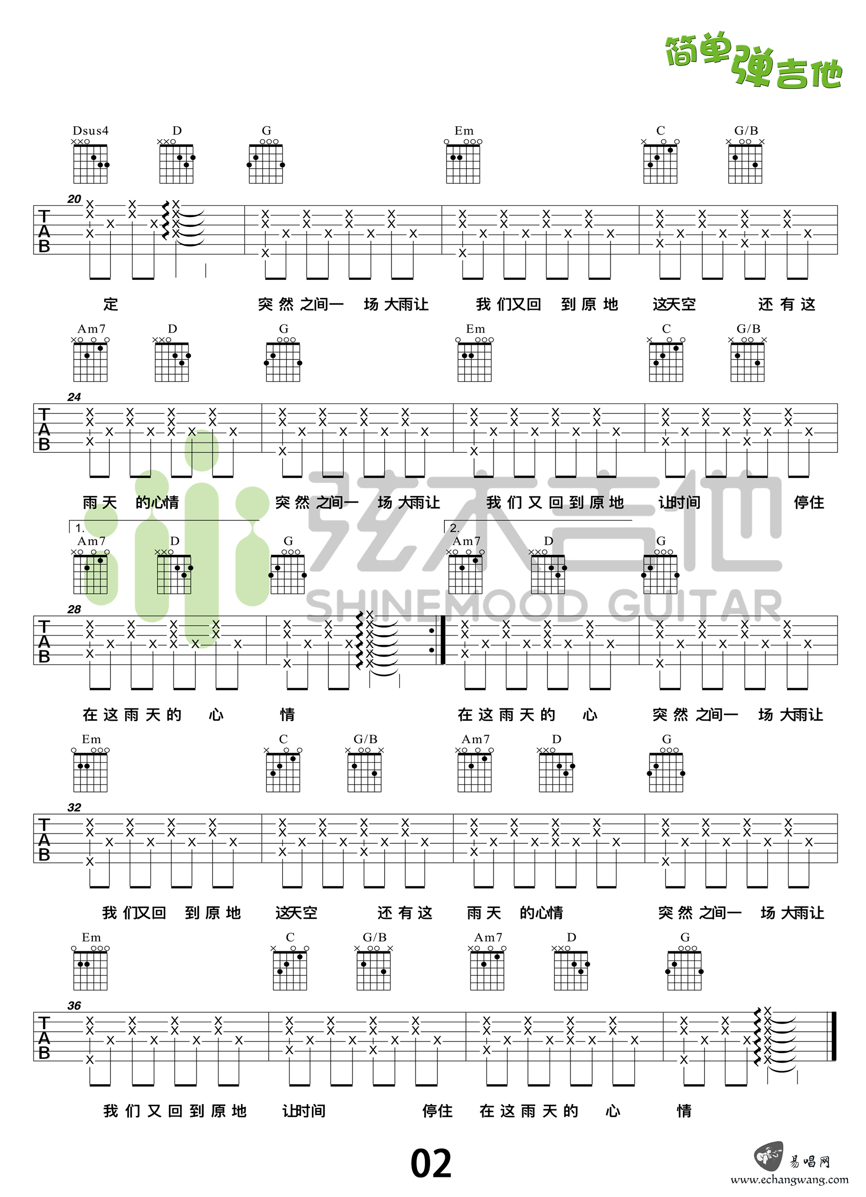 - 夏天的风吉他谱 G调男声版 温岚 高清弹唱谱