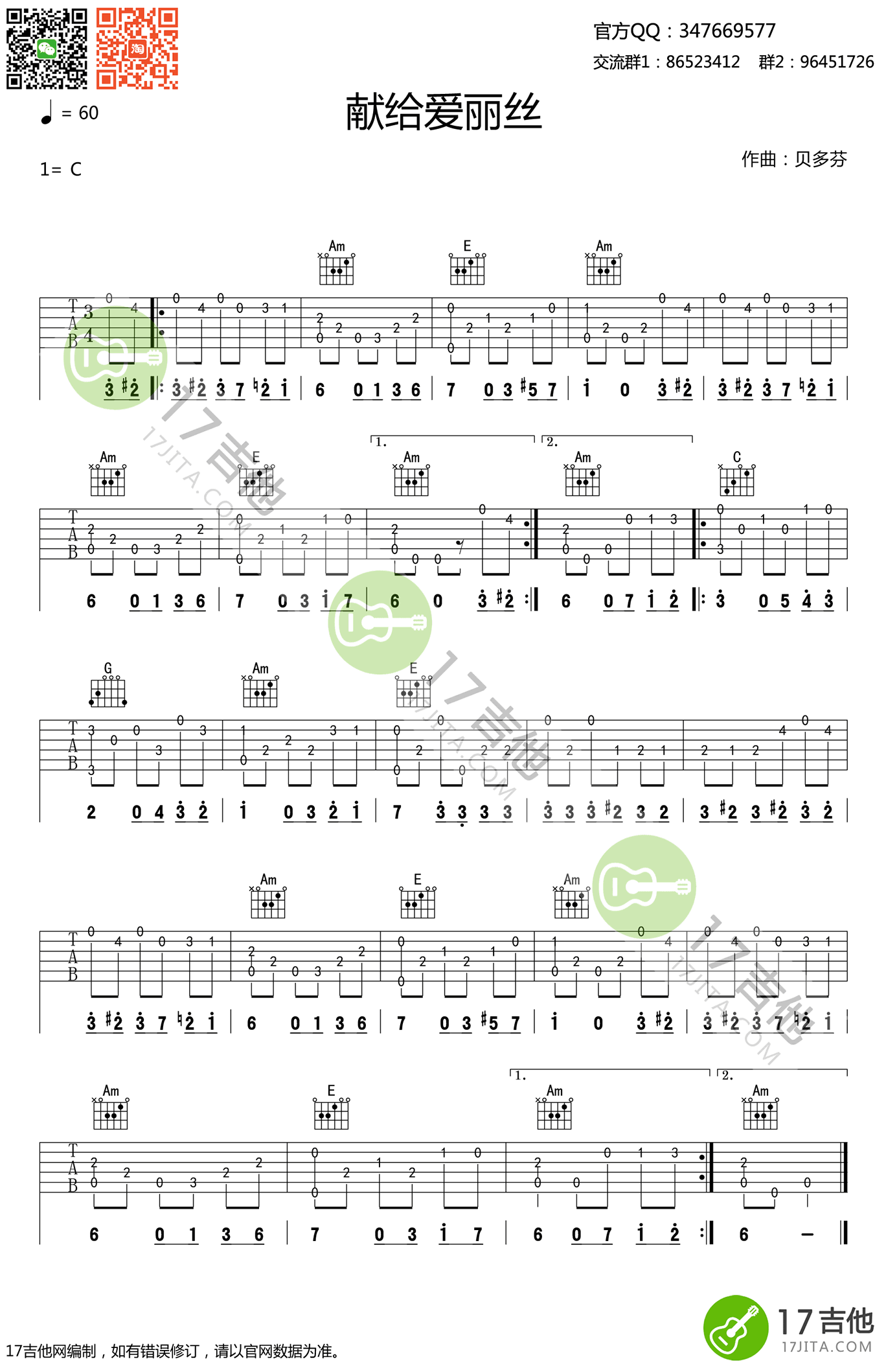 - 致爱丽丝吉他谱_C调指弹谱_独奏谱高清版
