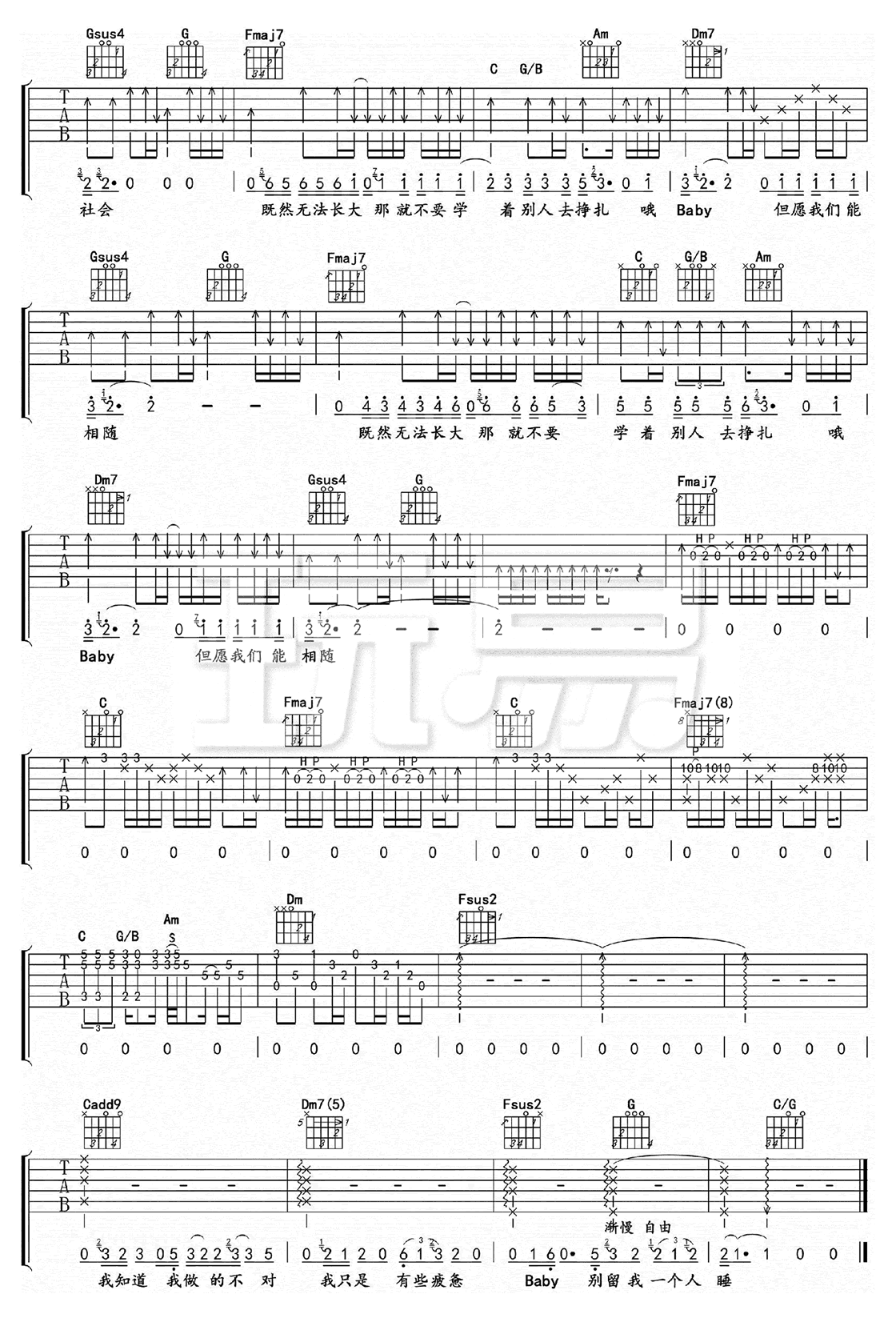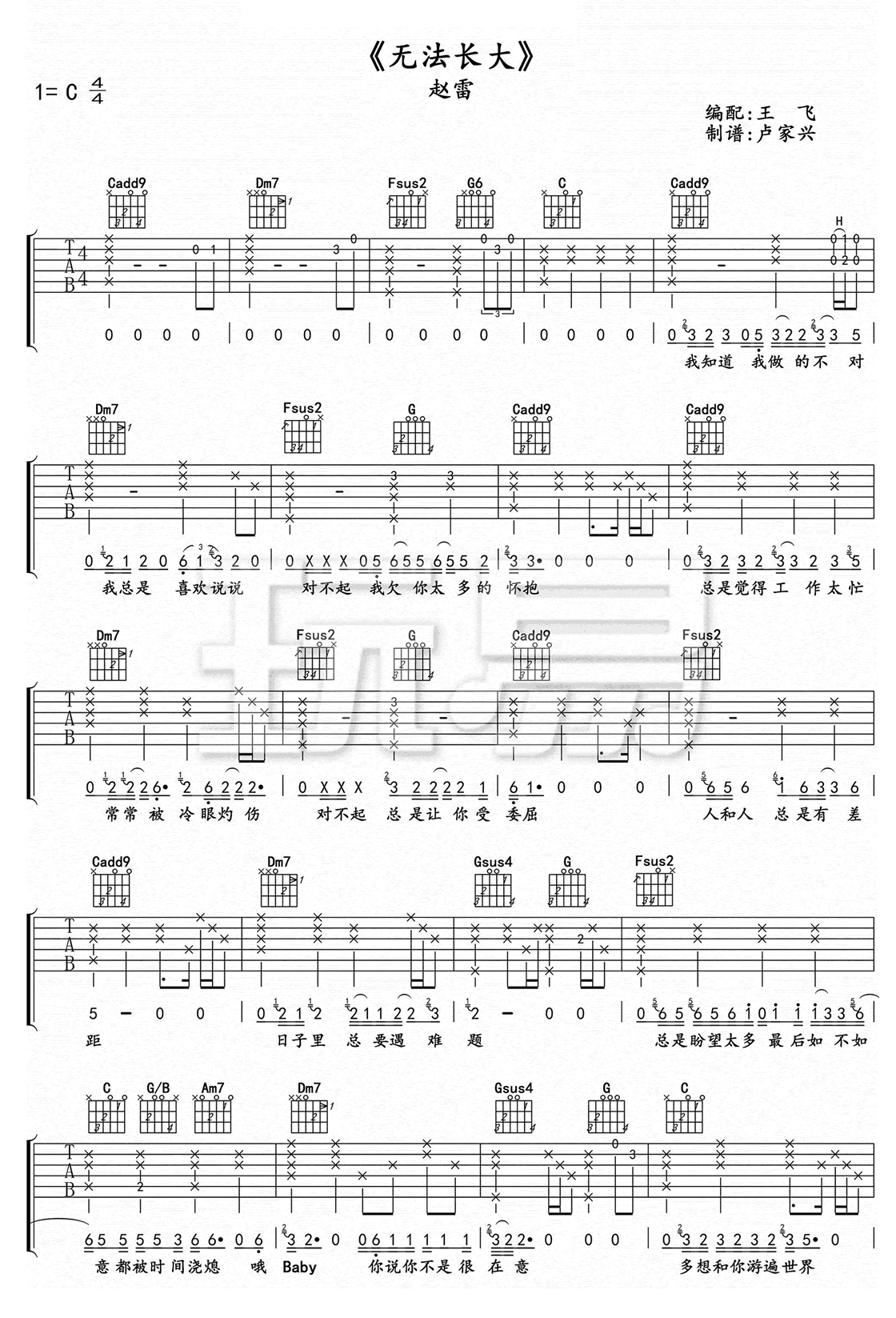 - 赵雷《无法长大》吉他谱 G调 弹唱谱六线谱