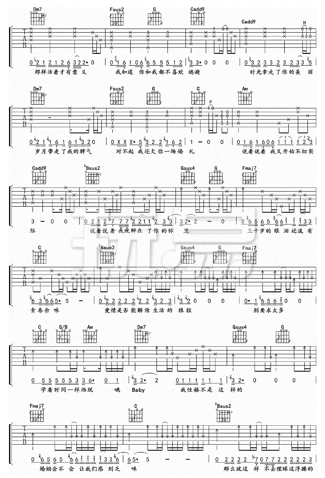 - 三十岁的女人吉他谱 赵雷 弹唱图片谱 中级版