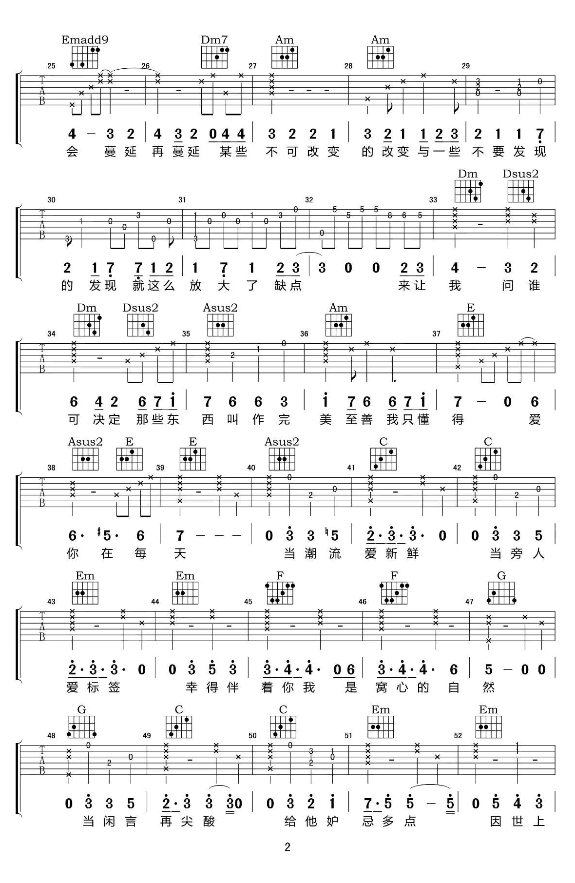 曲谱归类:陈奕迅吉他谱  粤语歌曲吉他谱
