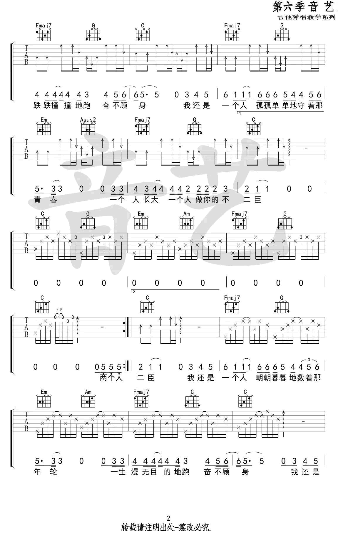 - 齐一《这个年纪》C调吉他谱 六线谱弹唱谱 高清版