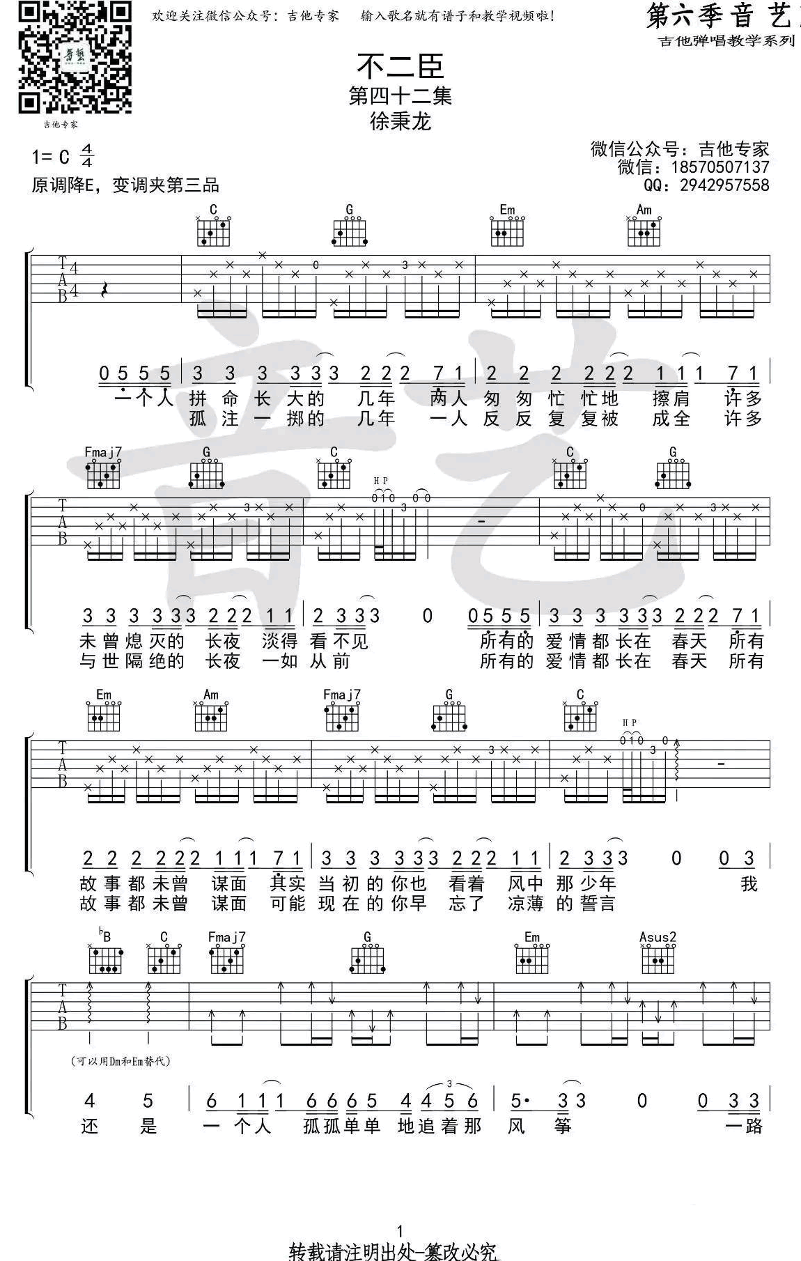 - 胸大的姑娘吉他谱 留声玩具 六线谱高清版 C调弹唱谱