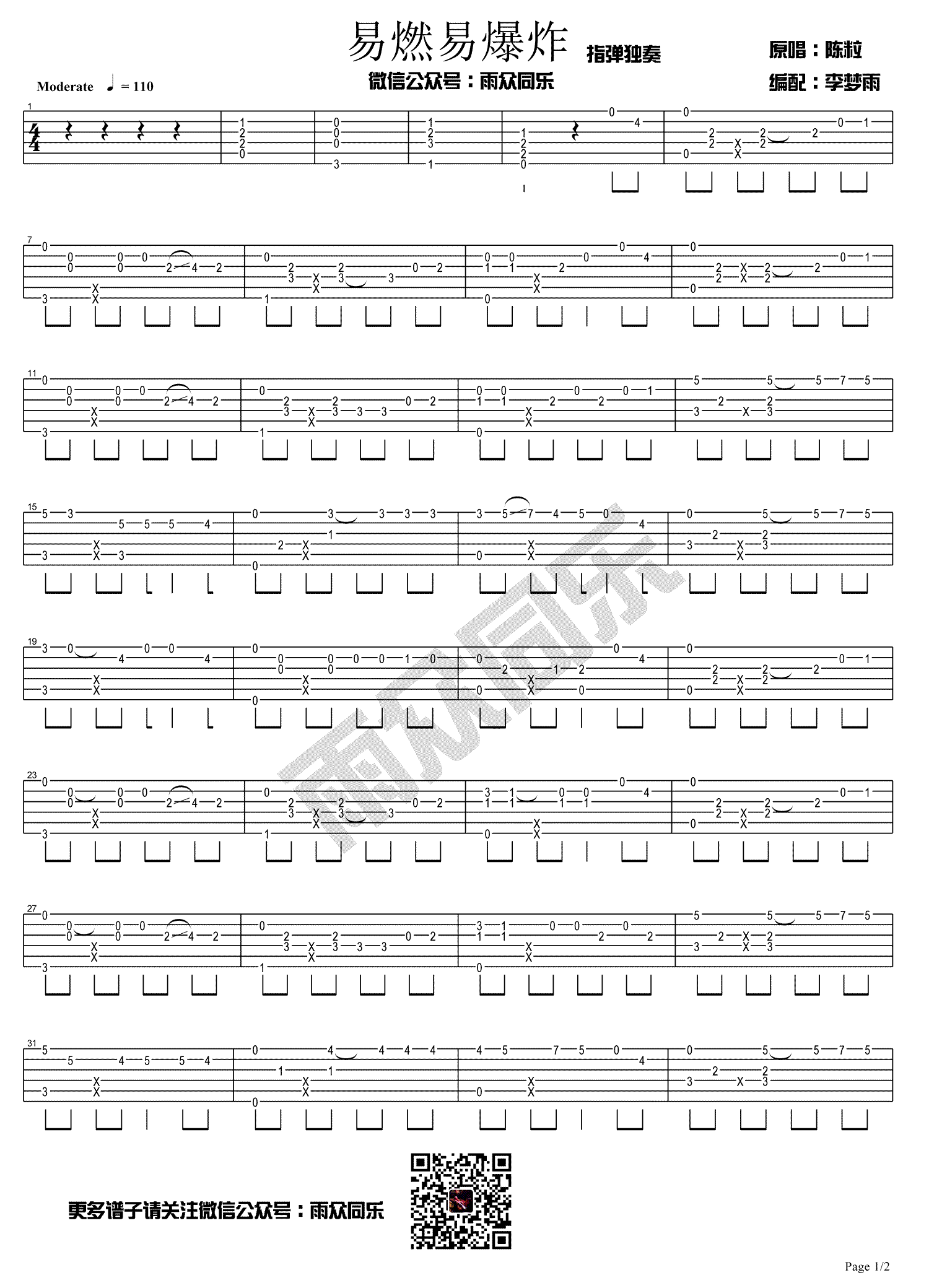 - 易燃易爆炸吉他谱 陈粒 吉他弹唱教学视频 图片谱